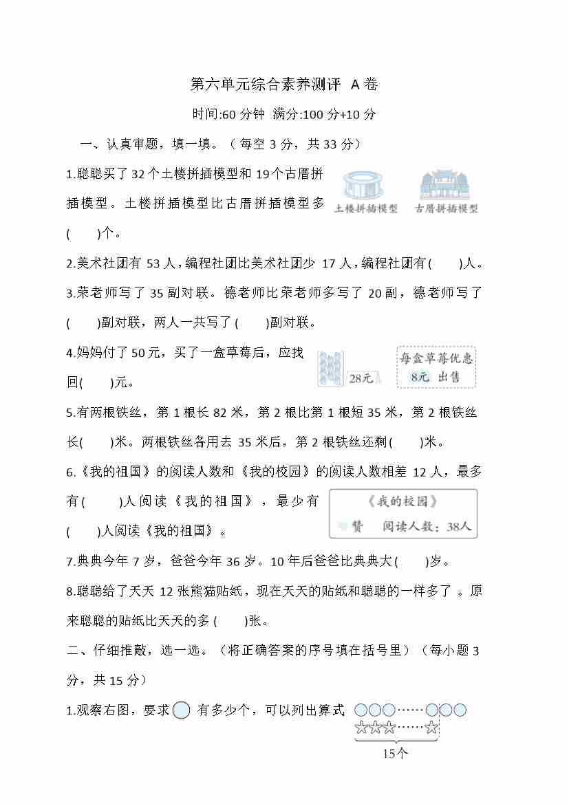 一年级下册第六单元综合素养测评 A卷(含答案)