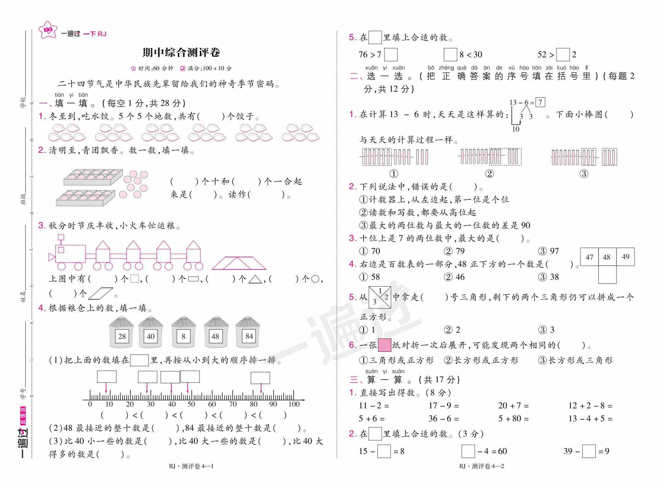 一(下)数学【人教版】25春期中测评卷(一遍过)含答案