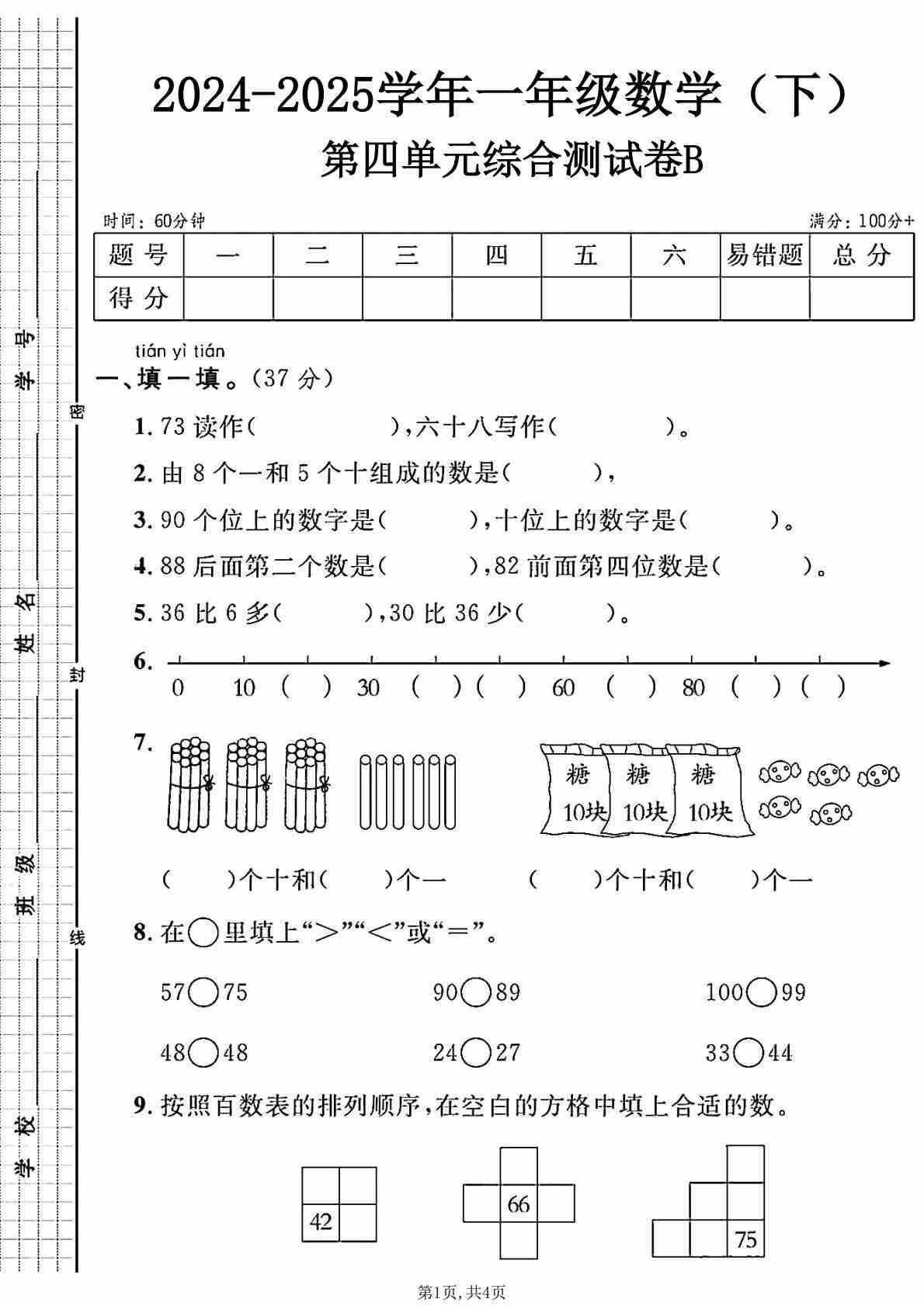 一(下)数学人教版24-25第四单元综合测试B卷