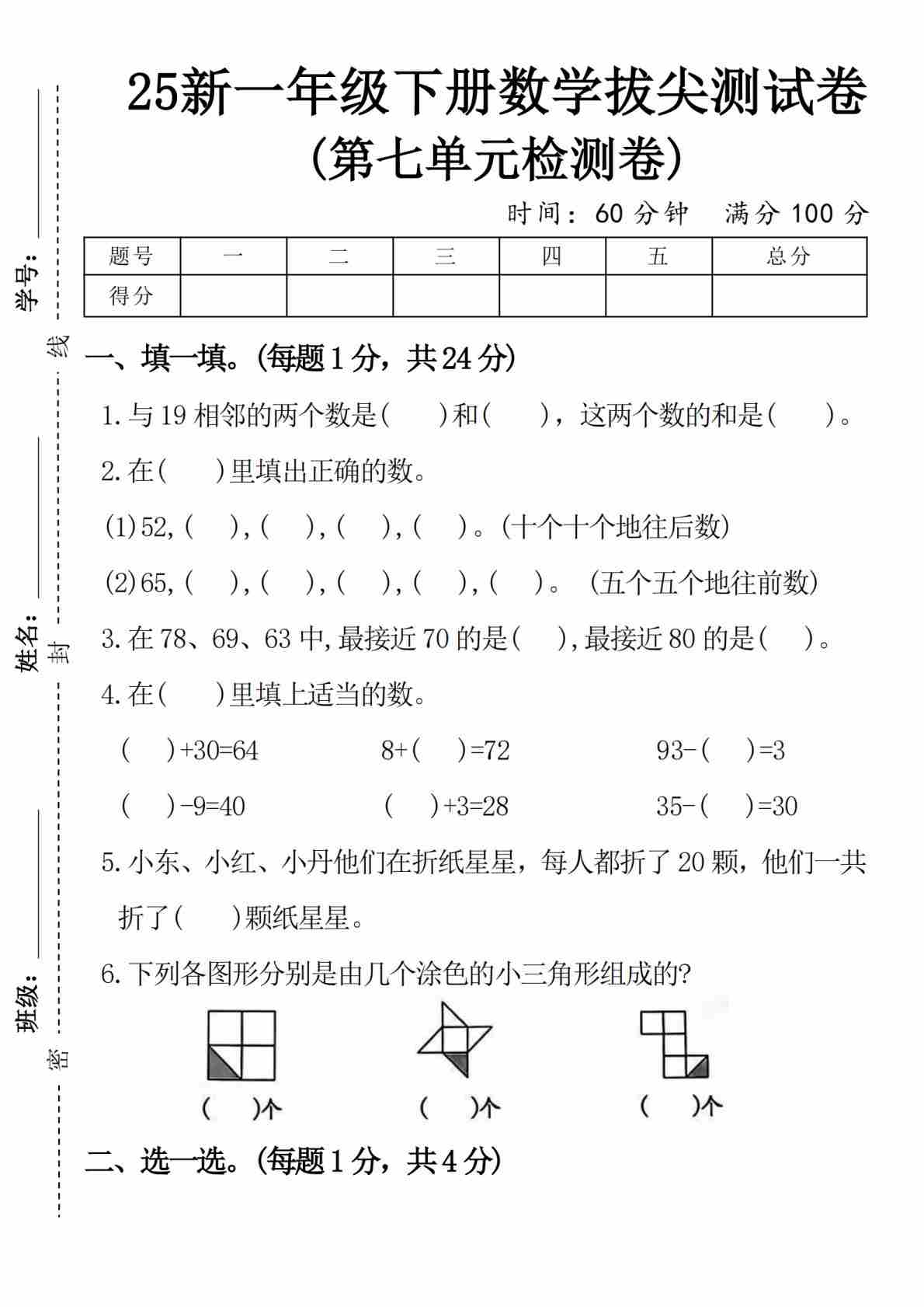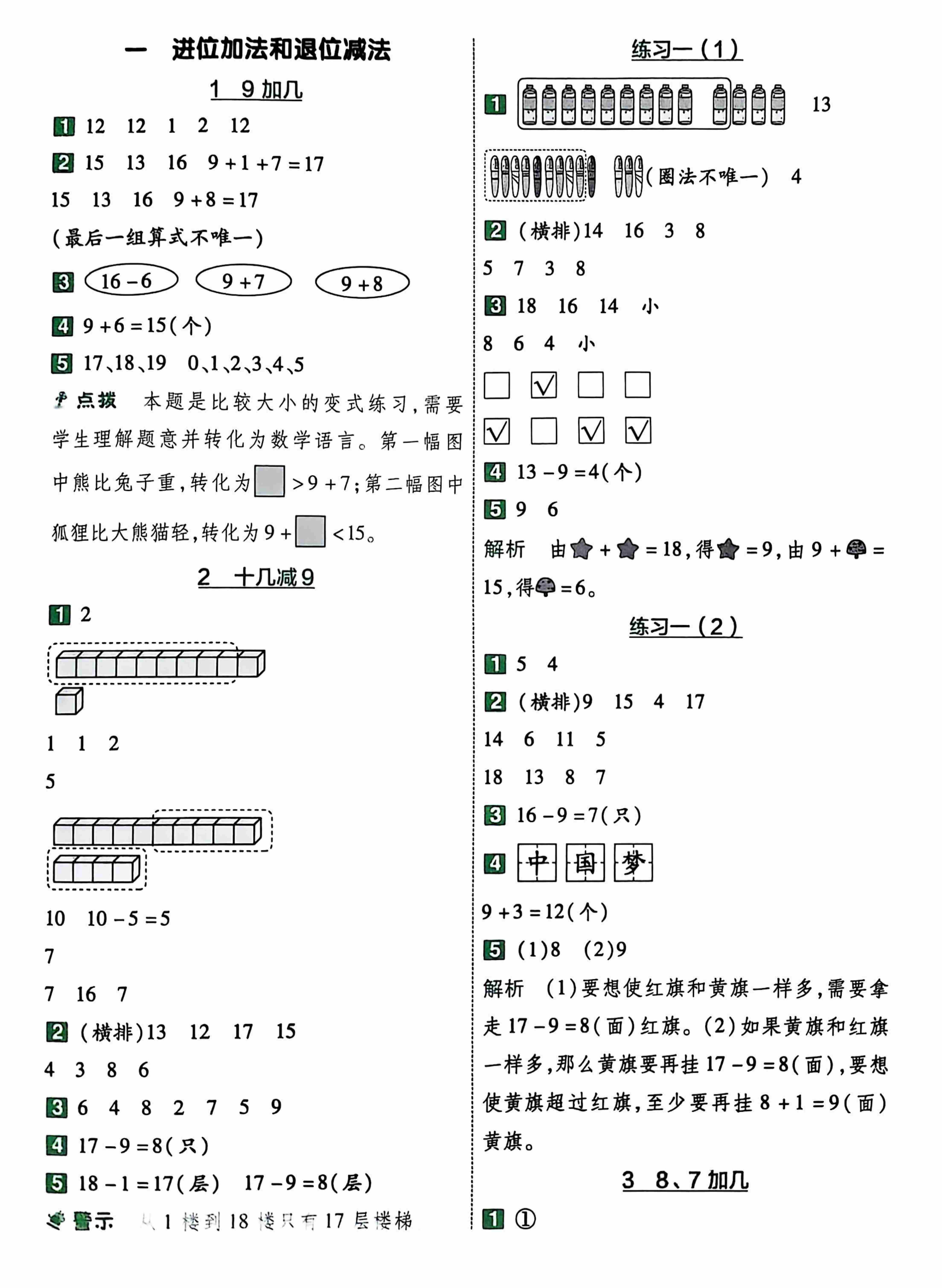 人教版1年级数学下-衔接题