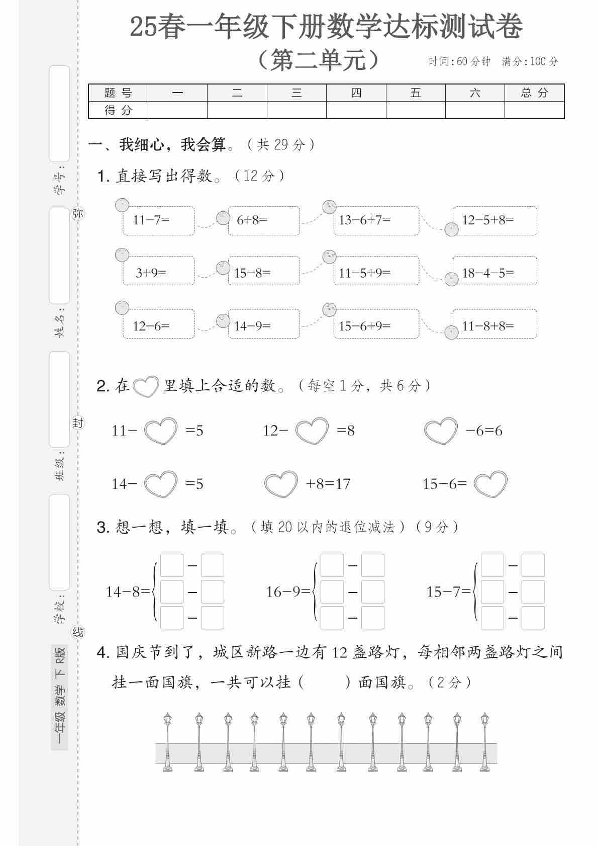 一(下)数学人教版24-25第四单元《100以内的口算加减法》测试卷