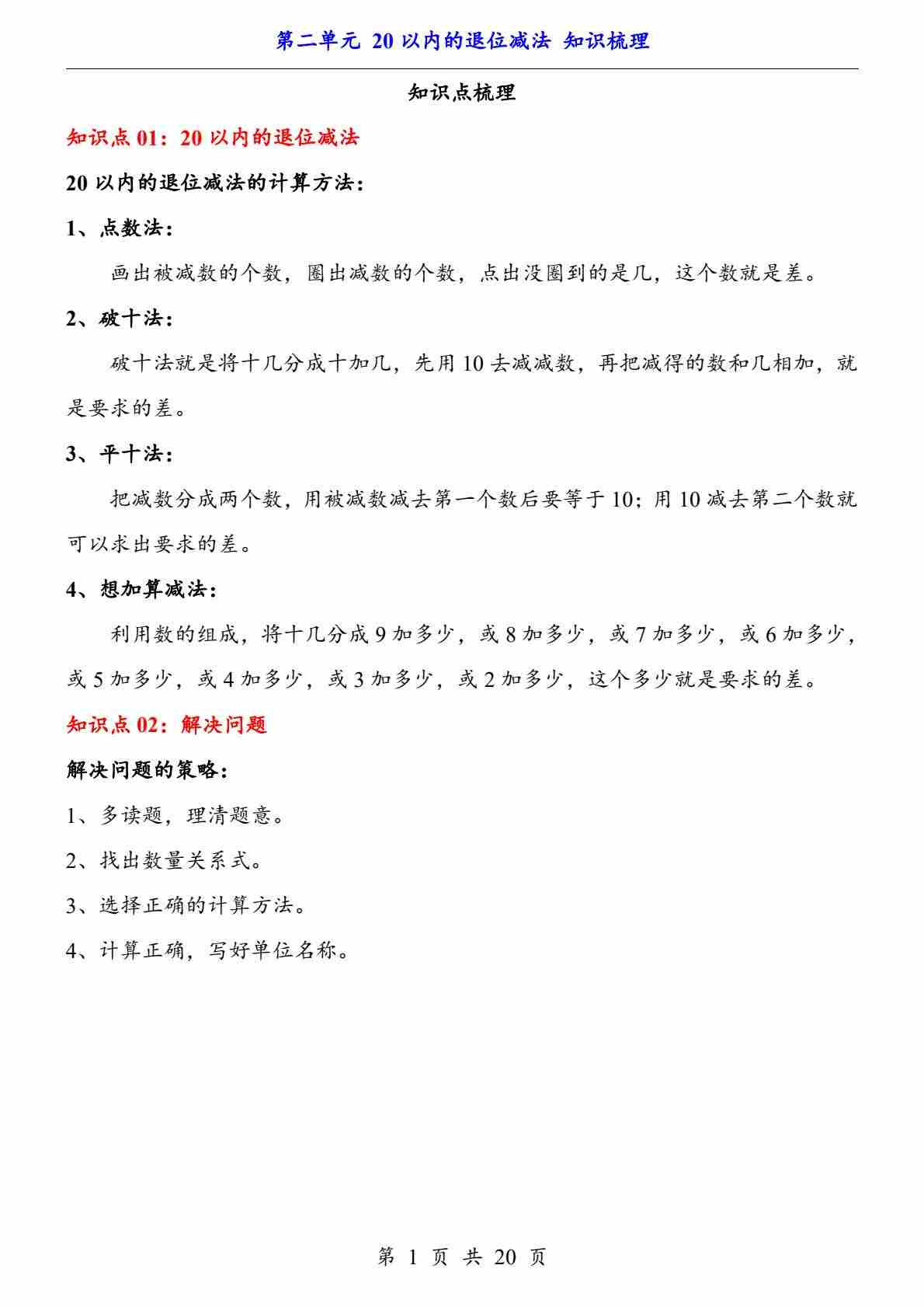 一(下)数学【人教版】第2单元 20以内的退位减法(知识梳理)
