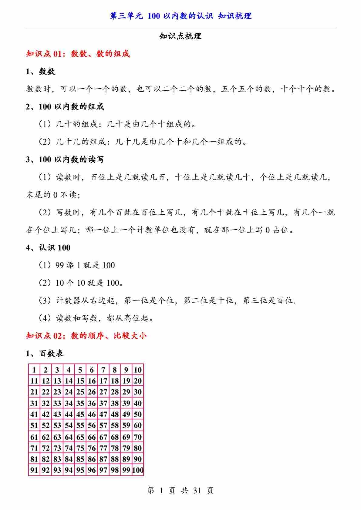 一(下)数学【人教版】第3单元 100以内数的认识(知识梳理)