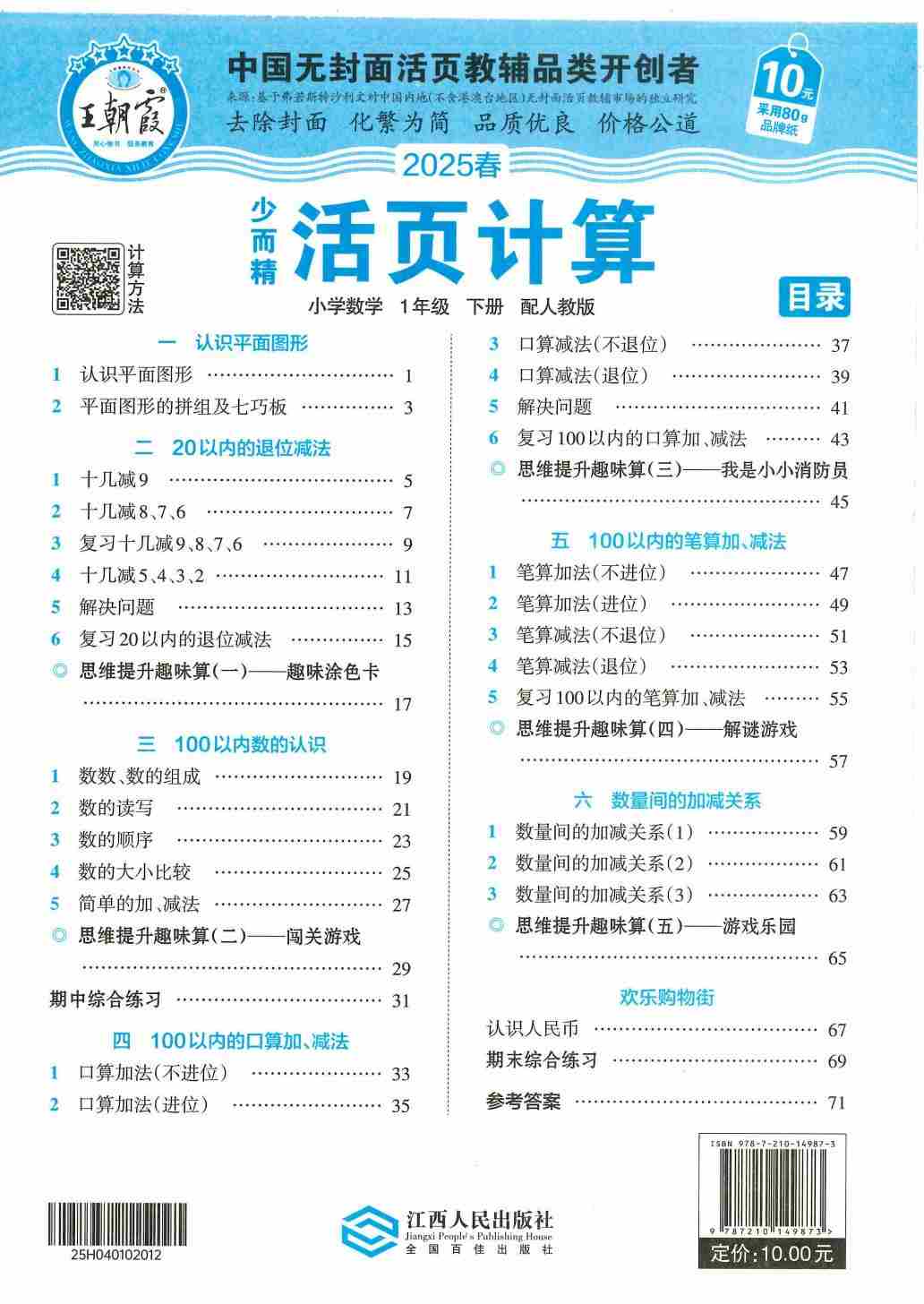 一(下)数学人教版【2025春-王朝霞活页计算】
