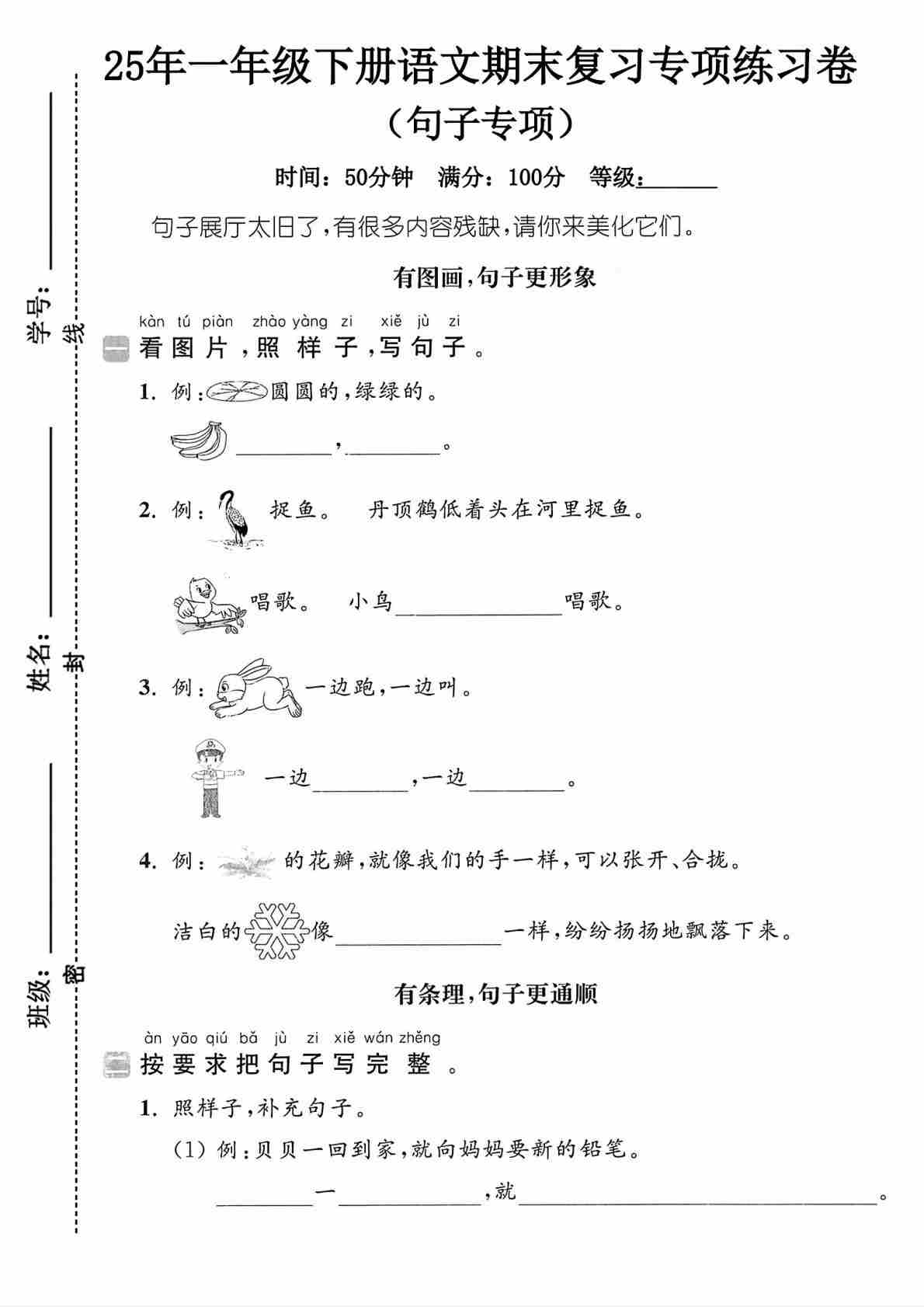 一 (下)语文25年人教版期末复习《句子专项》练习卷 (1)