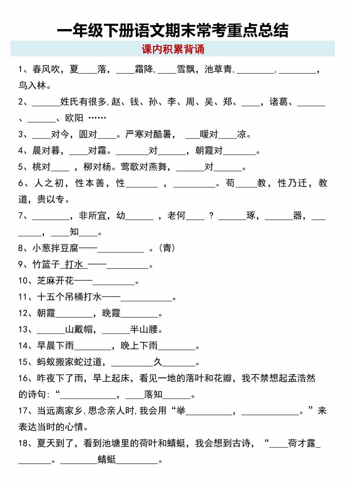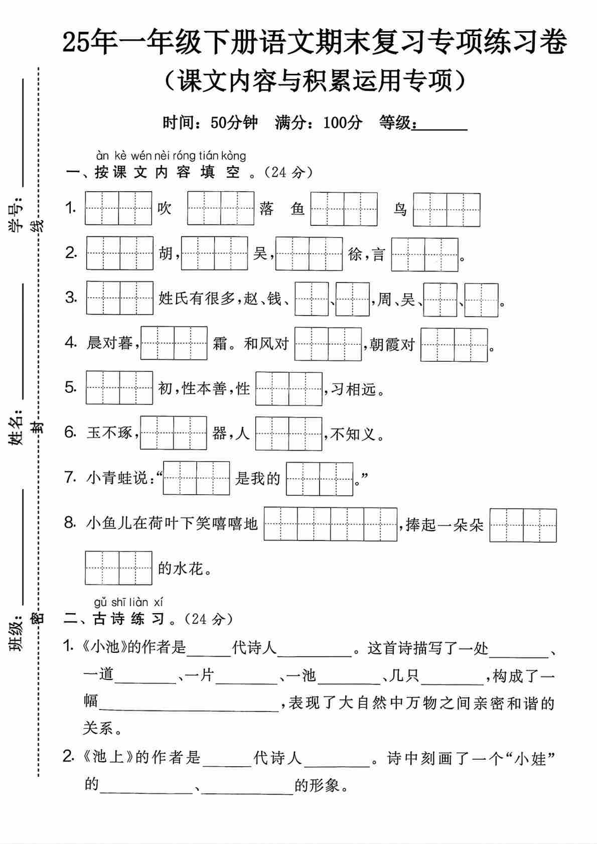 一 (下)语文25年人教版期末复习《课文内容积累与运用》专项练习卷 (1)