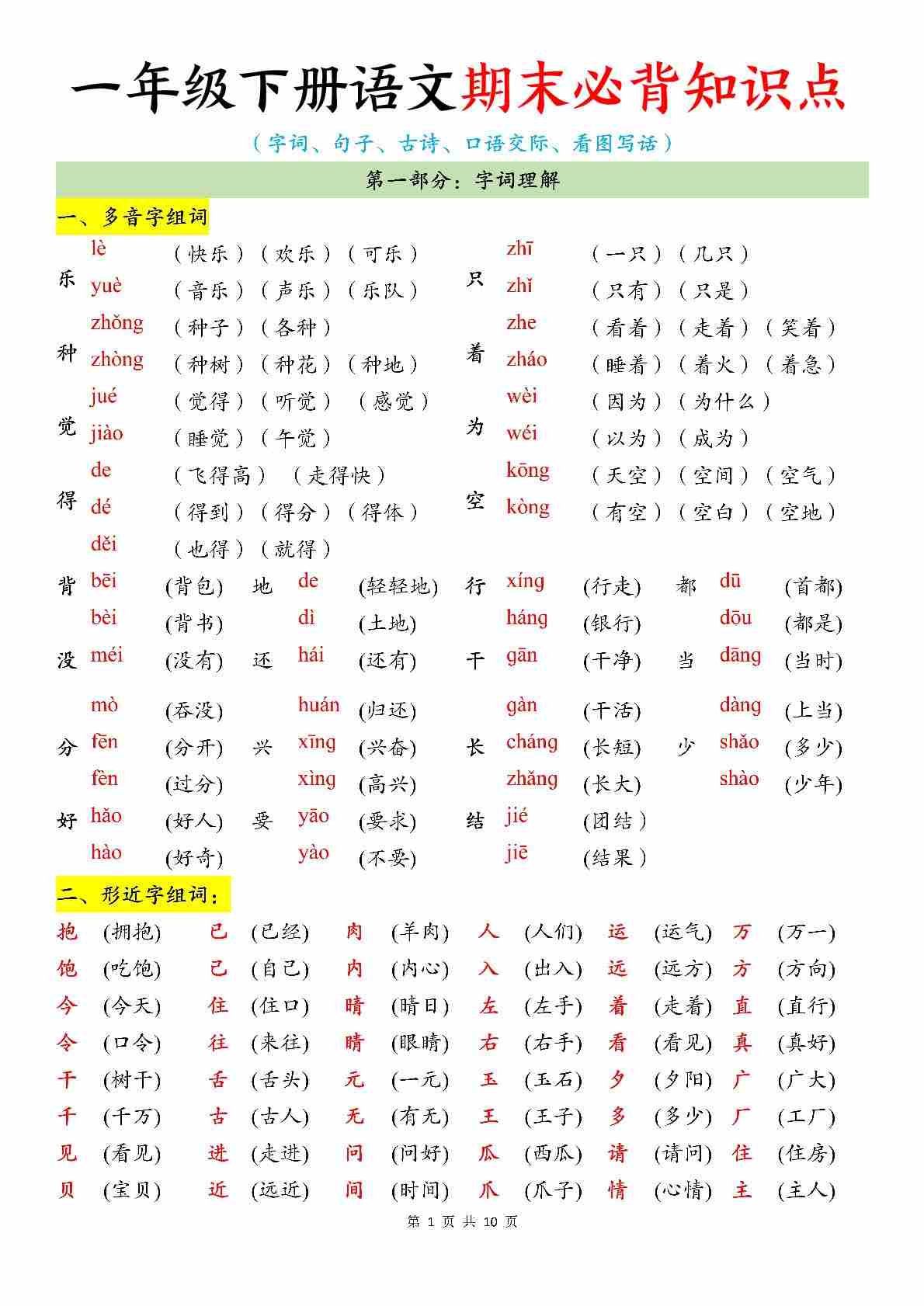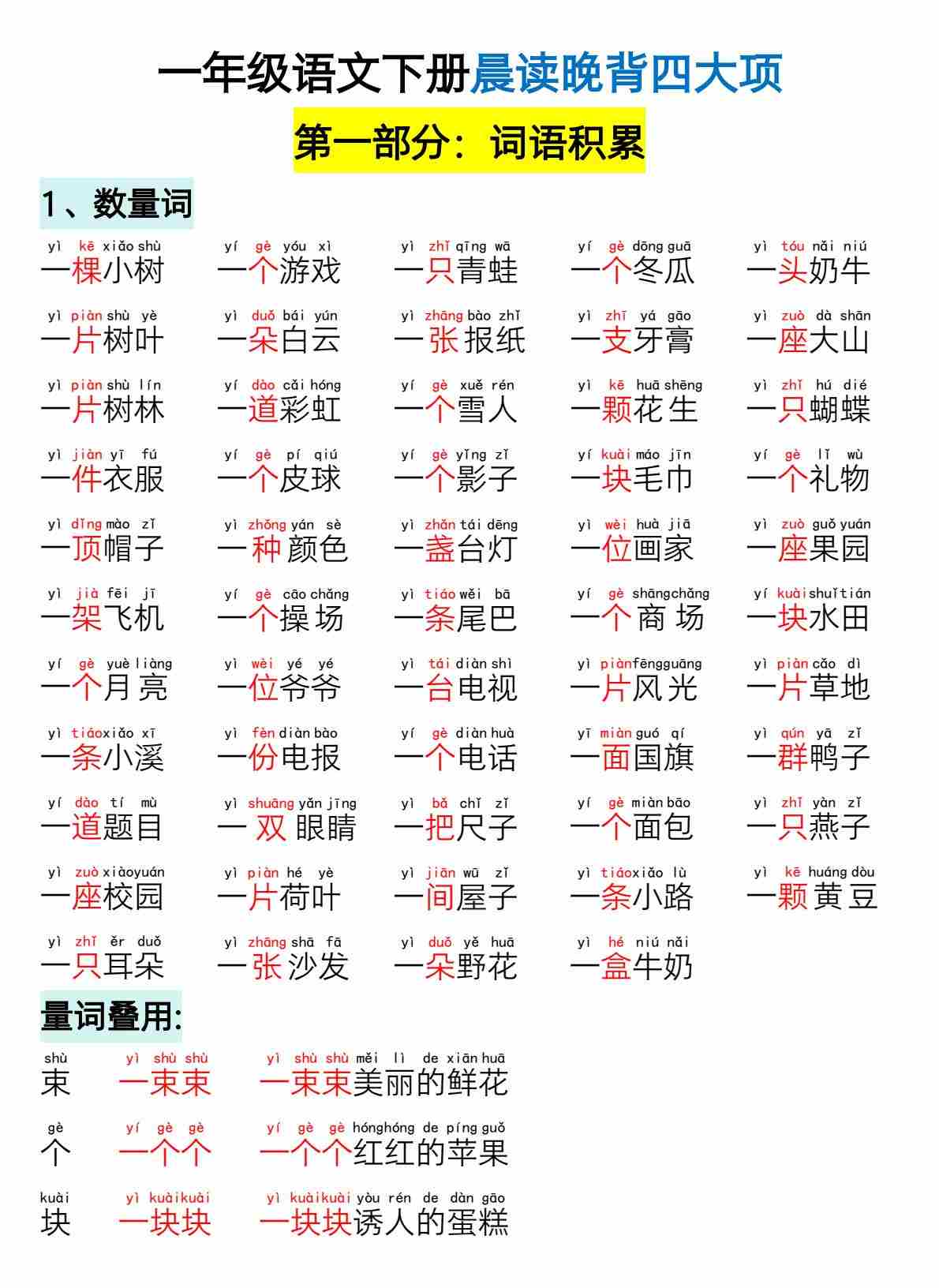 一 (下)语文25年人教版期末复习《词语专项》练习卷 (1)