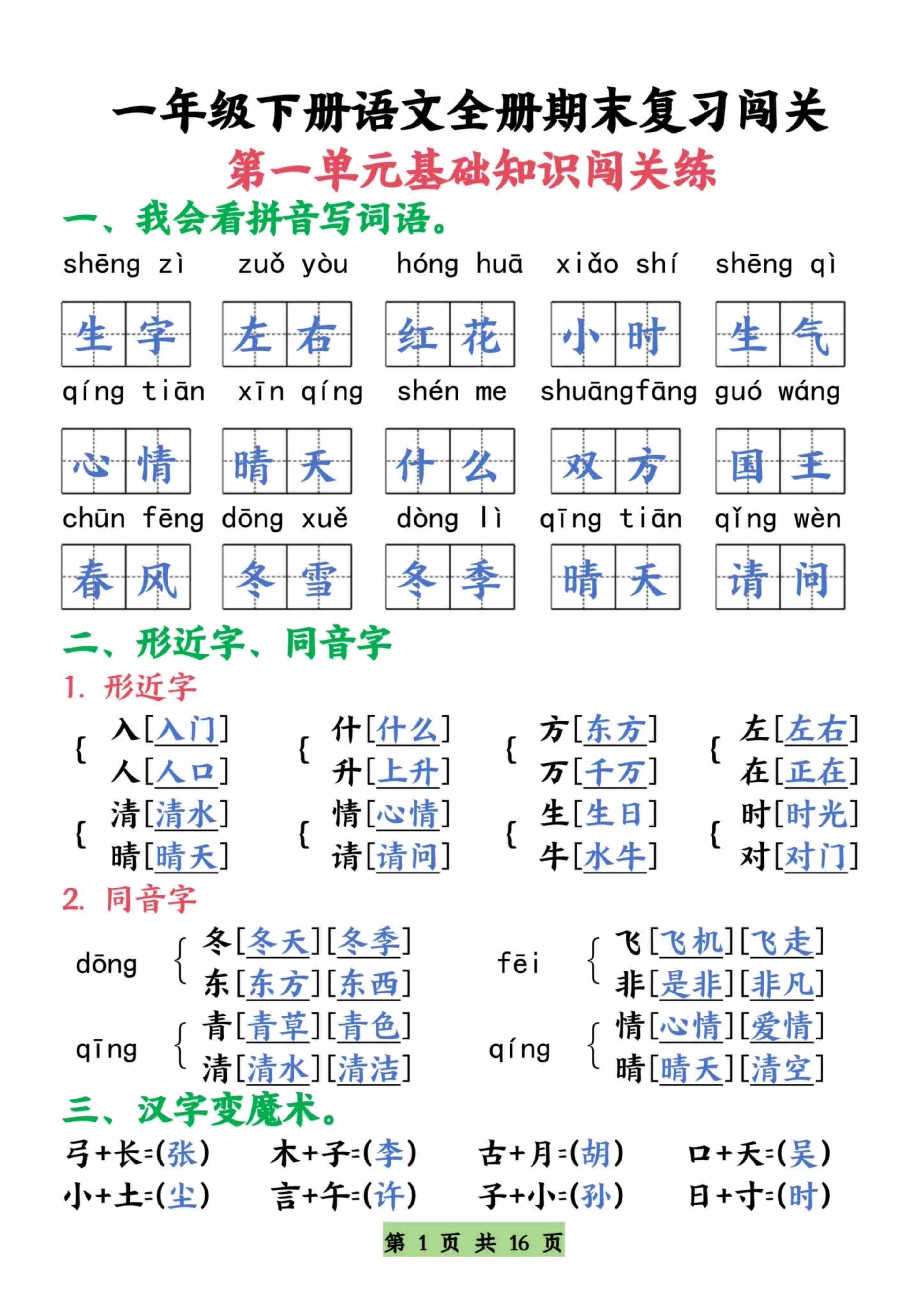 一 (下)语文【期末复习全册1-8单元基础知识闯关练】