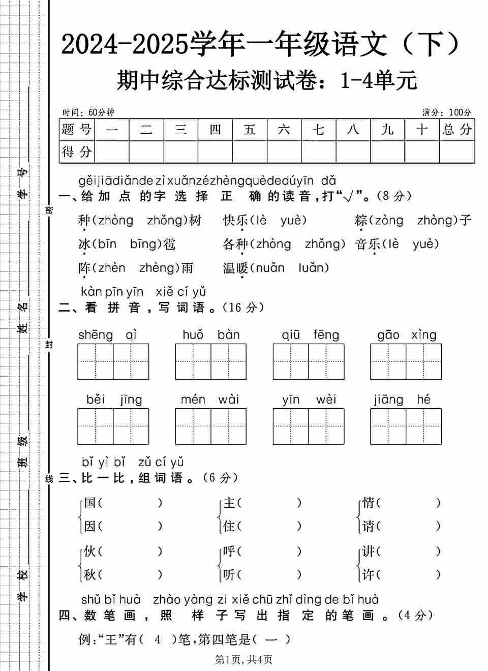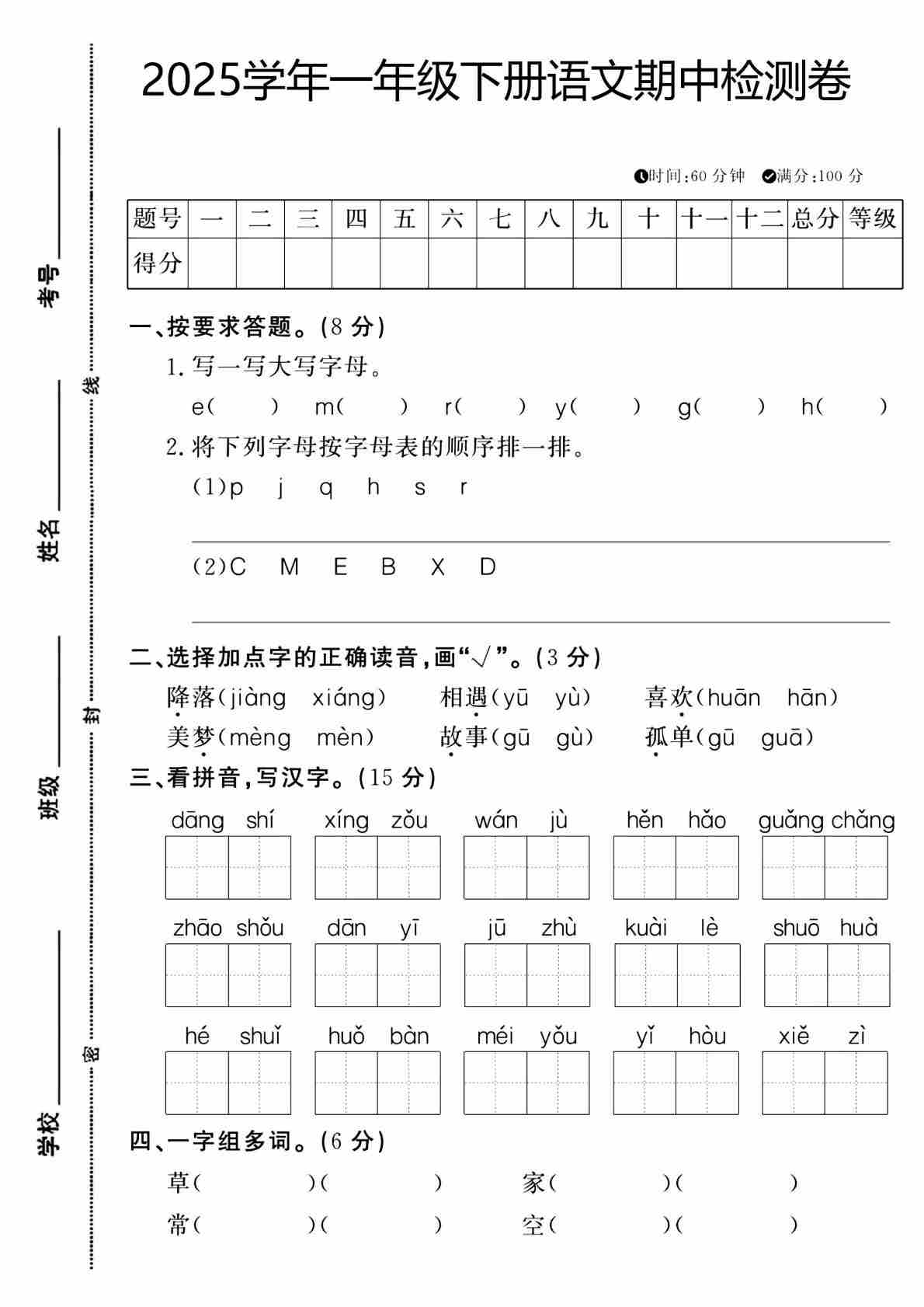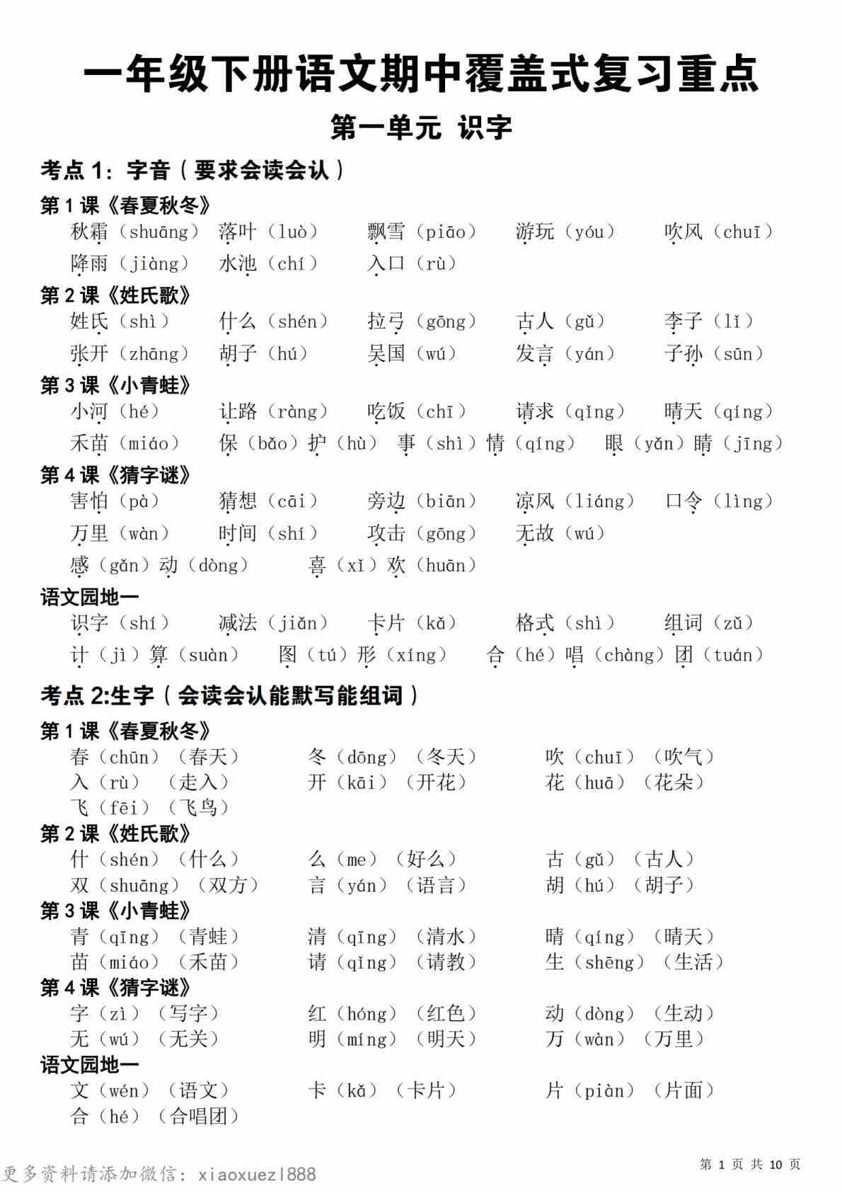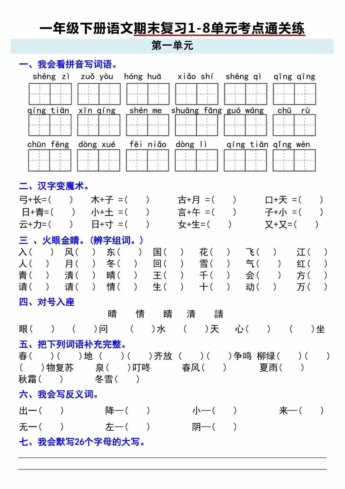 一(下)语文25春1-8单元基础知识复习闯关赛(16页)