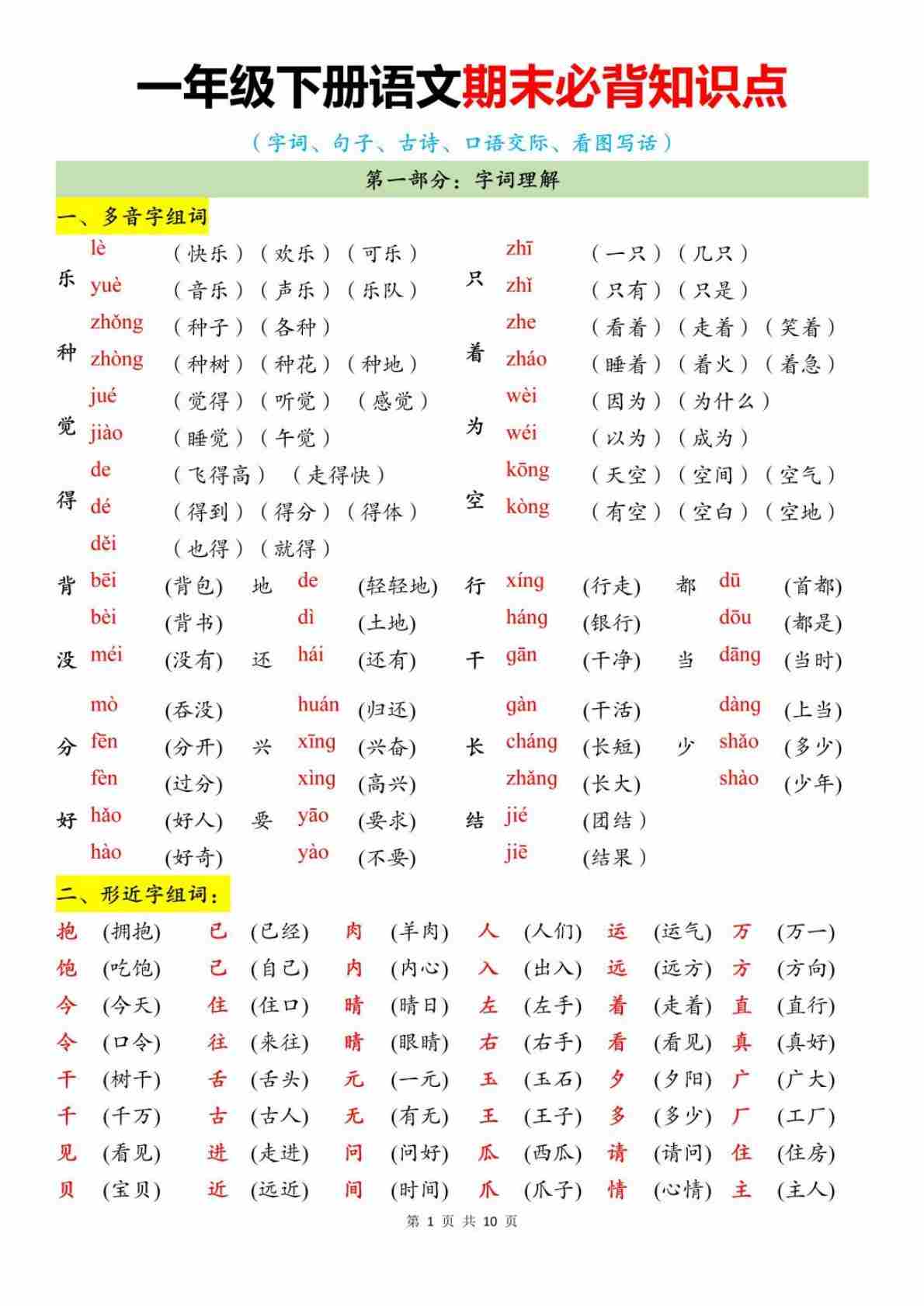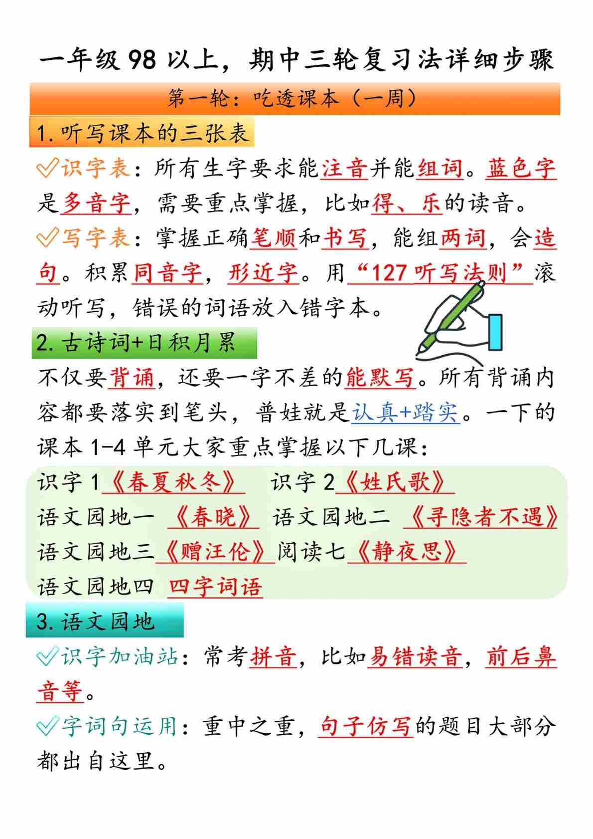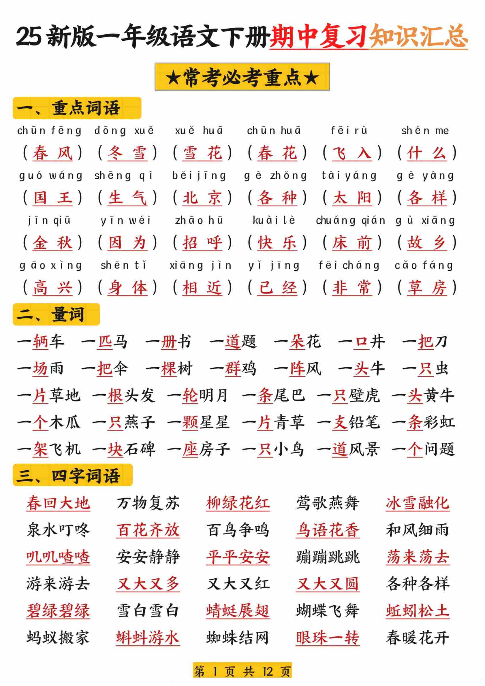 一(下)语文25新期中复习高频考点知识汇总(12页)