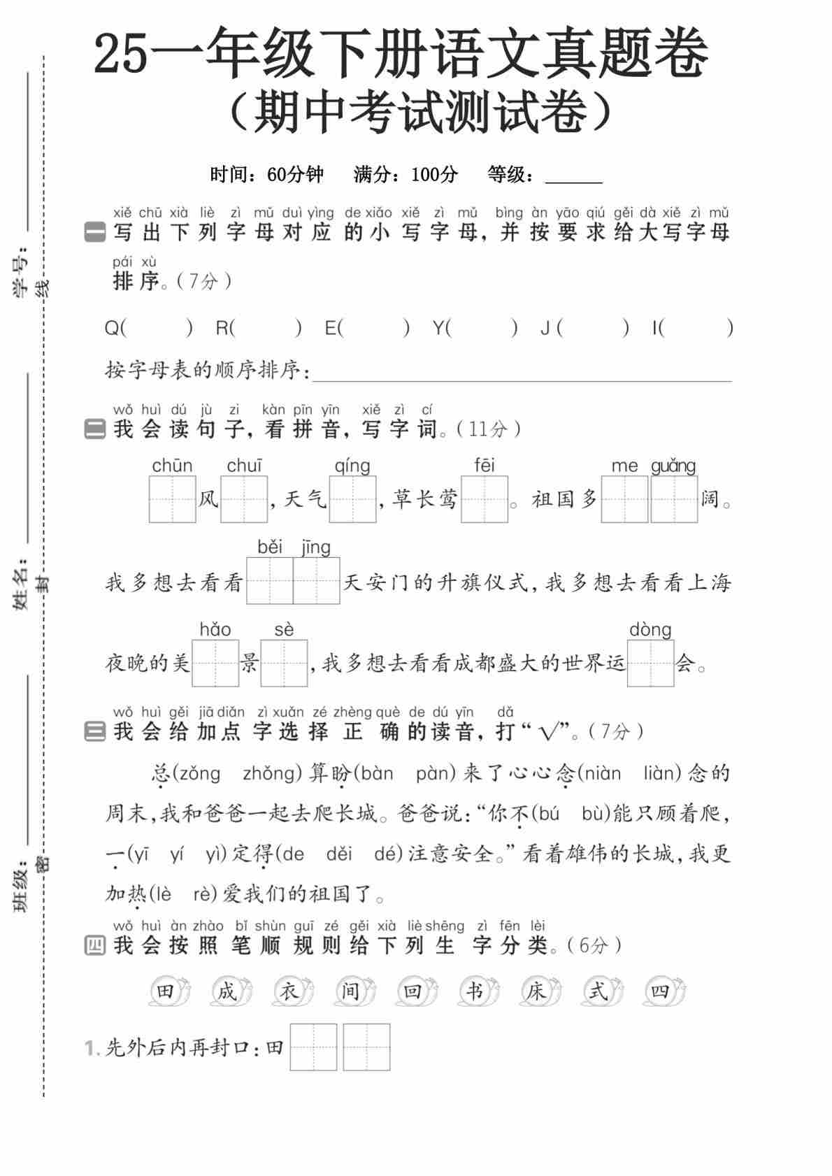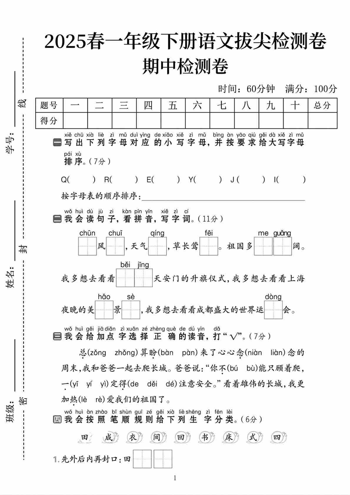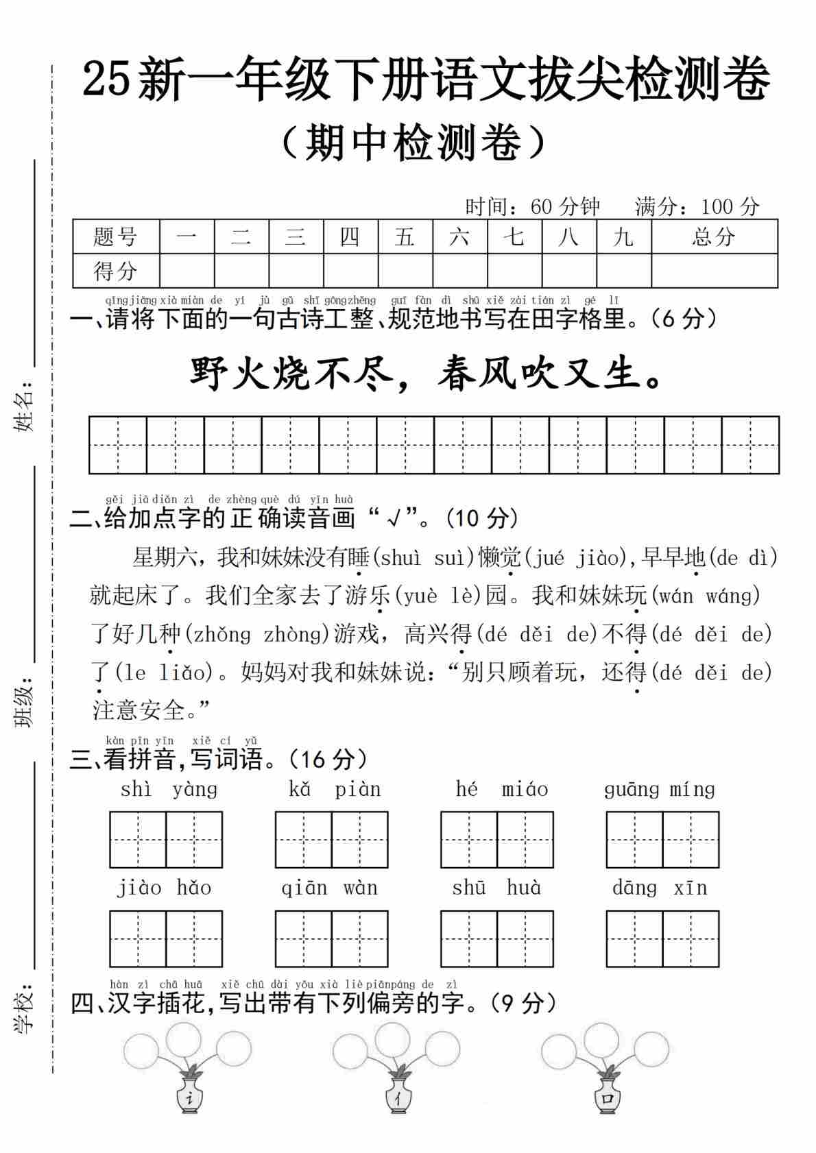 一(下)语文【25春-期中拔尖检测卷(含答案)】