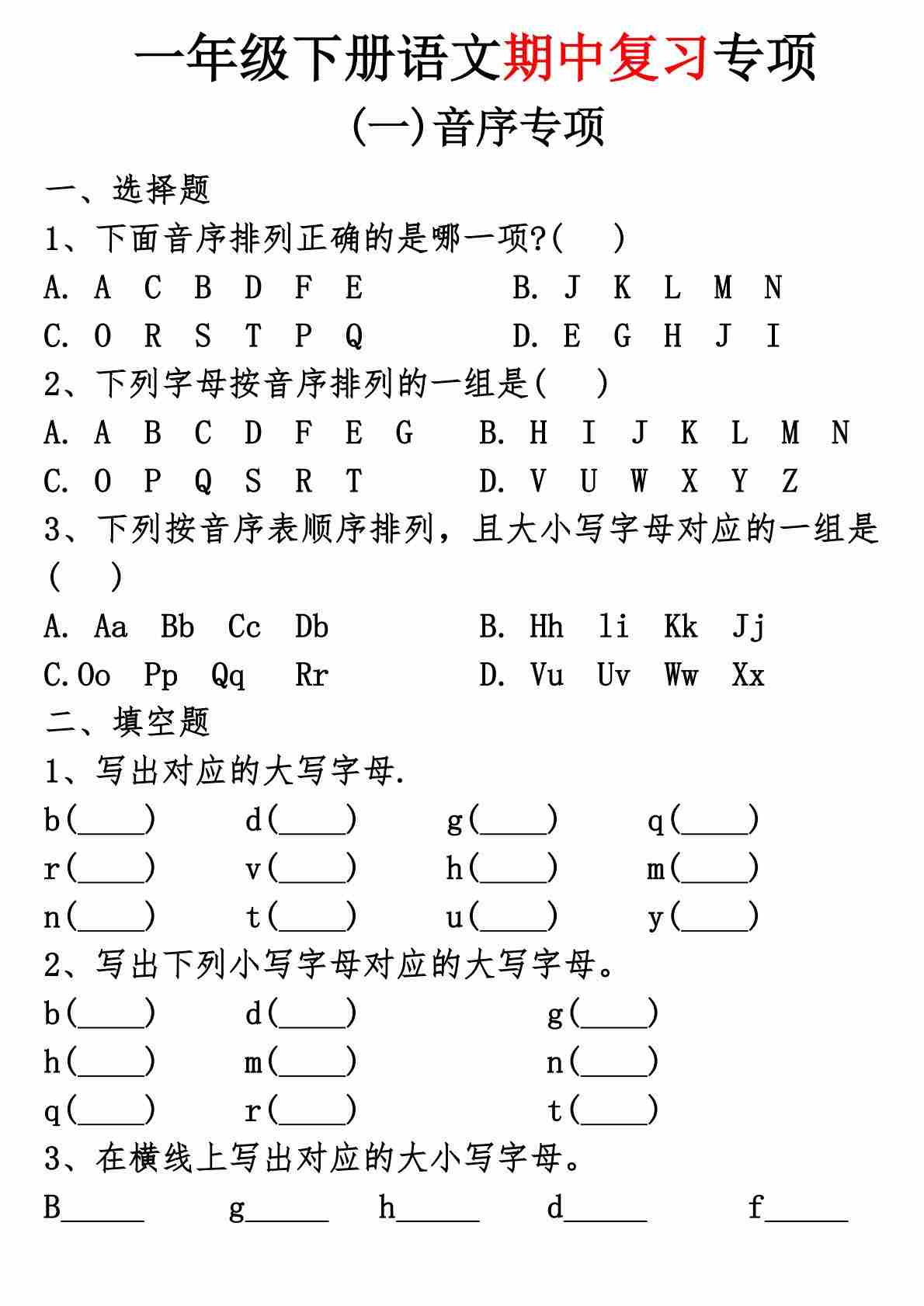 一(下)语文【期中试卷常考仿写句子汇总(1-4单元期中13页)】