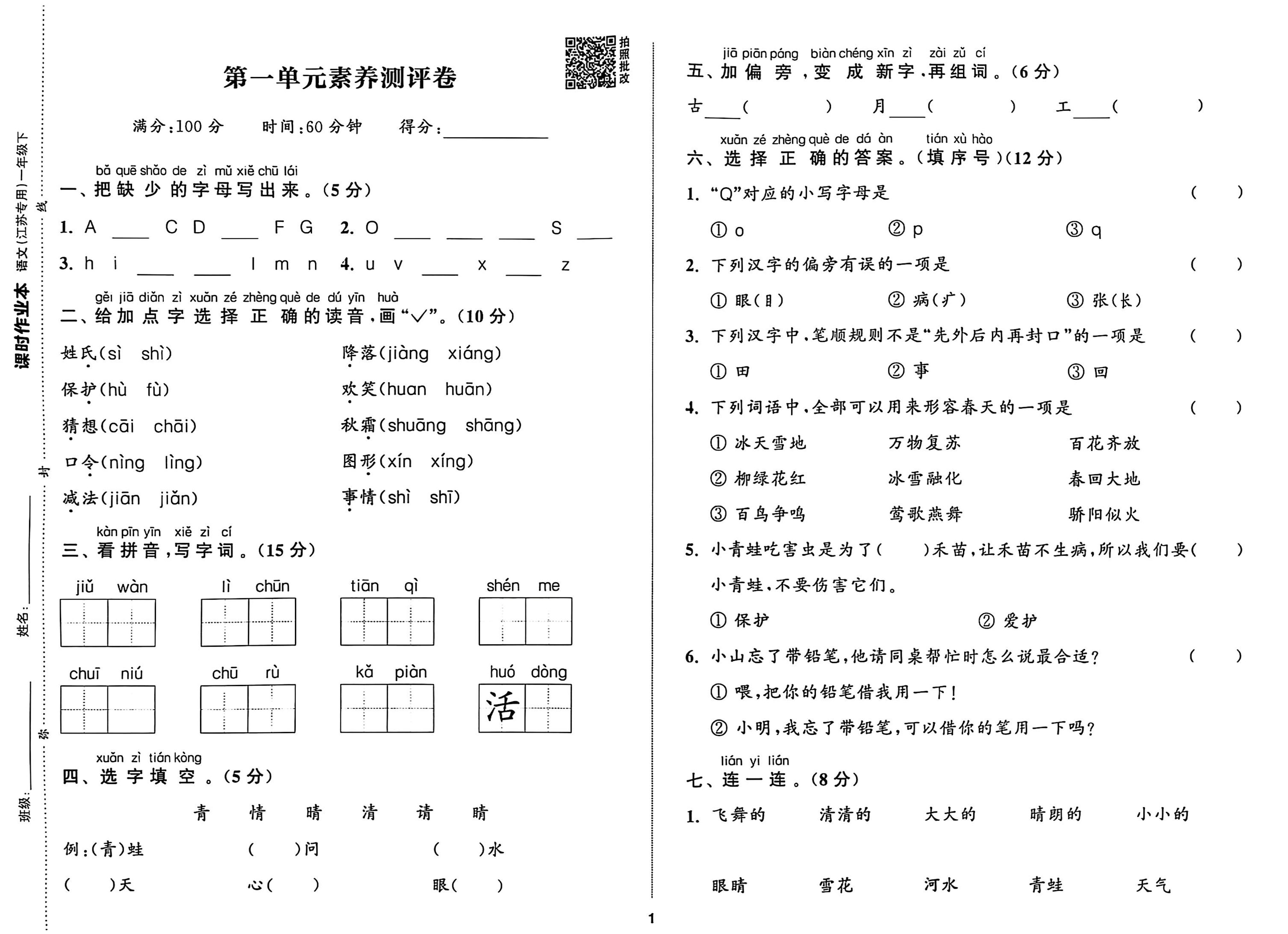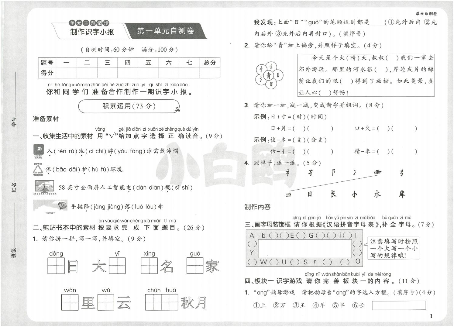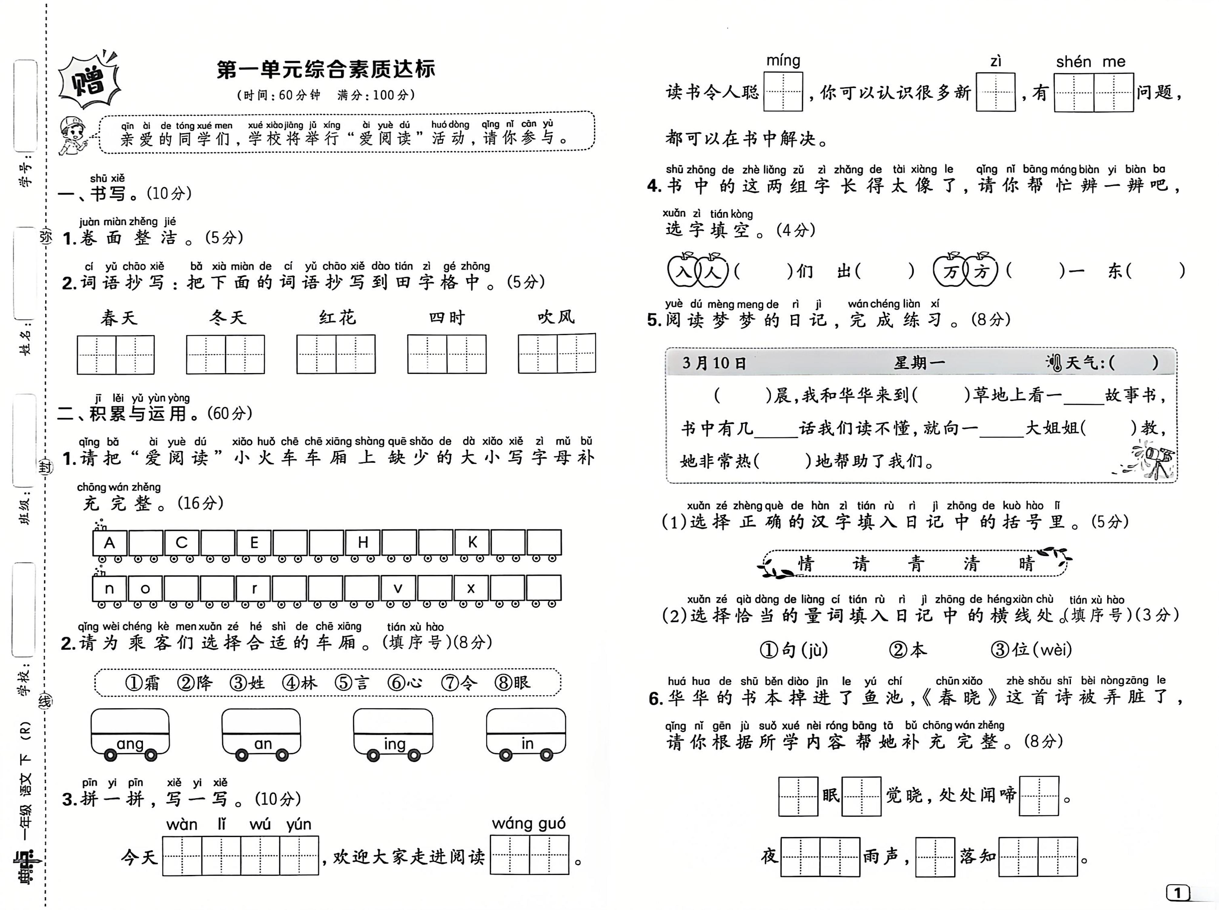 一(下)语文25春RJ小白鸥情境卷A4(单元期中期末)含答案
