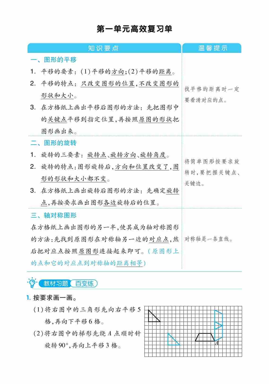 四(下)苏教版数学【第一单元平移、旋转和轴对称(空白)】