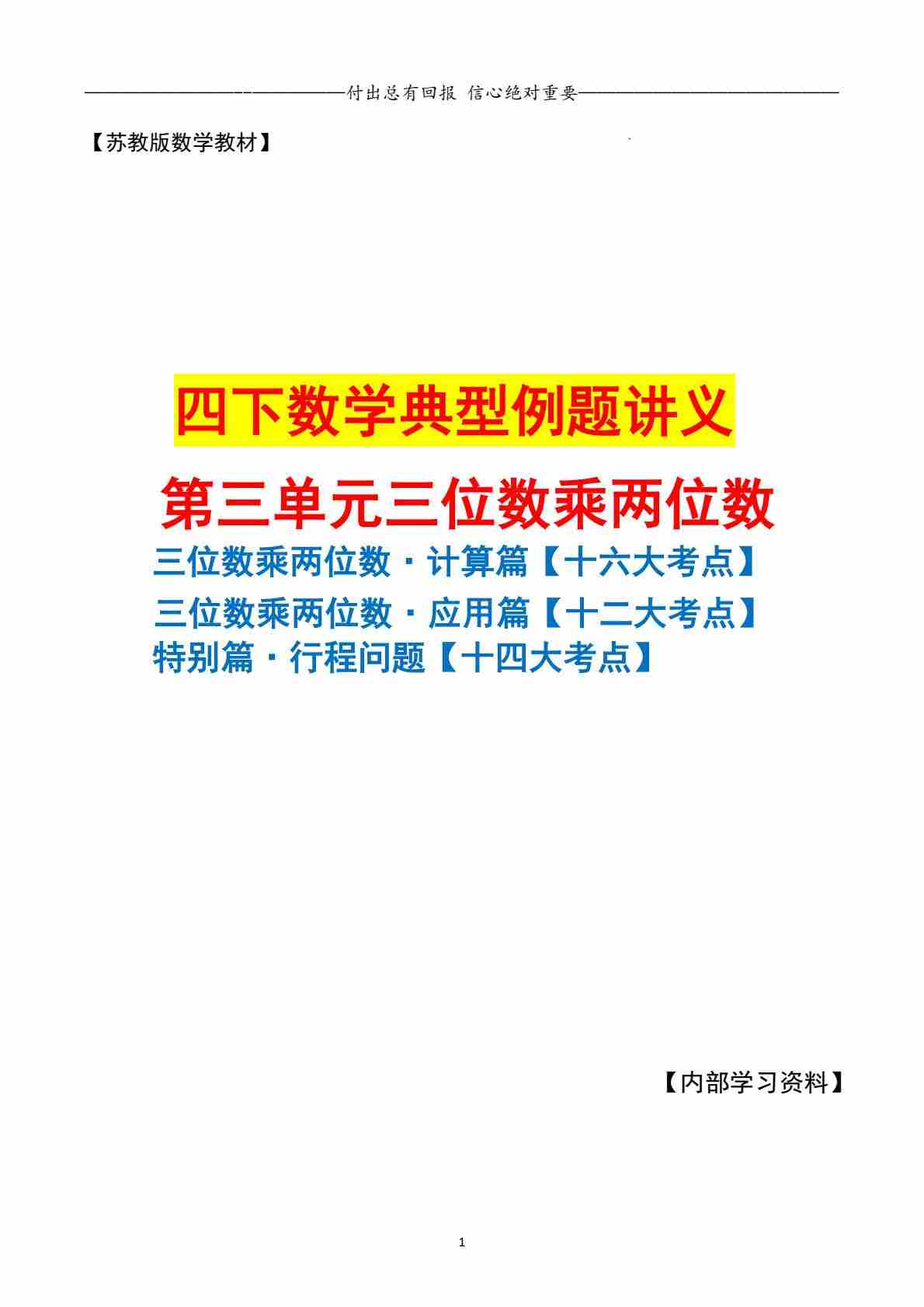 四(下)苏教版数学【第三单元三位数乘两位数·计算篇【十六大考点】(解析版)】