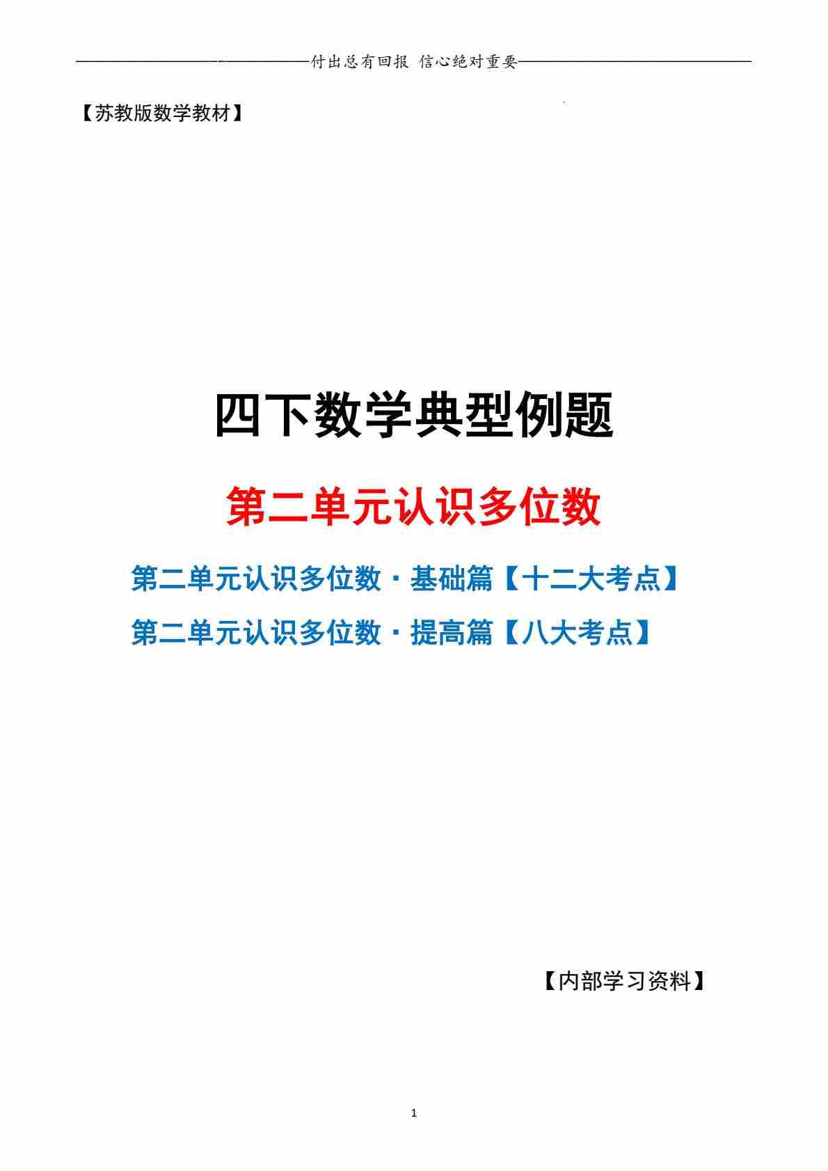 四(下)苏教版数学【第二单元认识多位数·提高篇【八大考点】(解析版)】