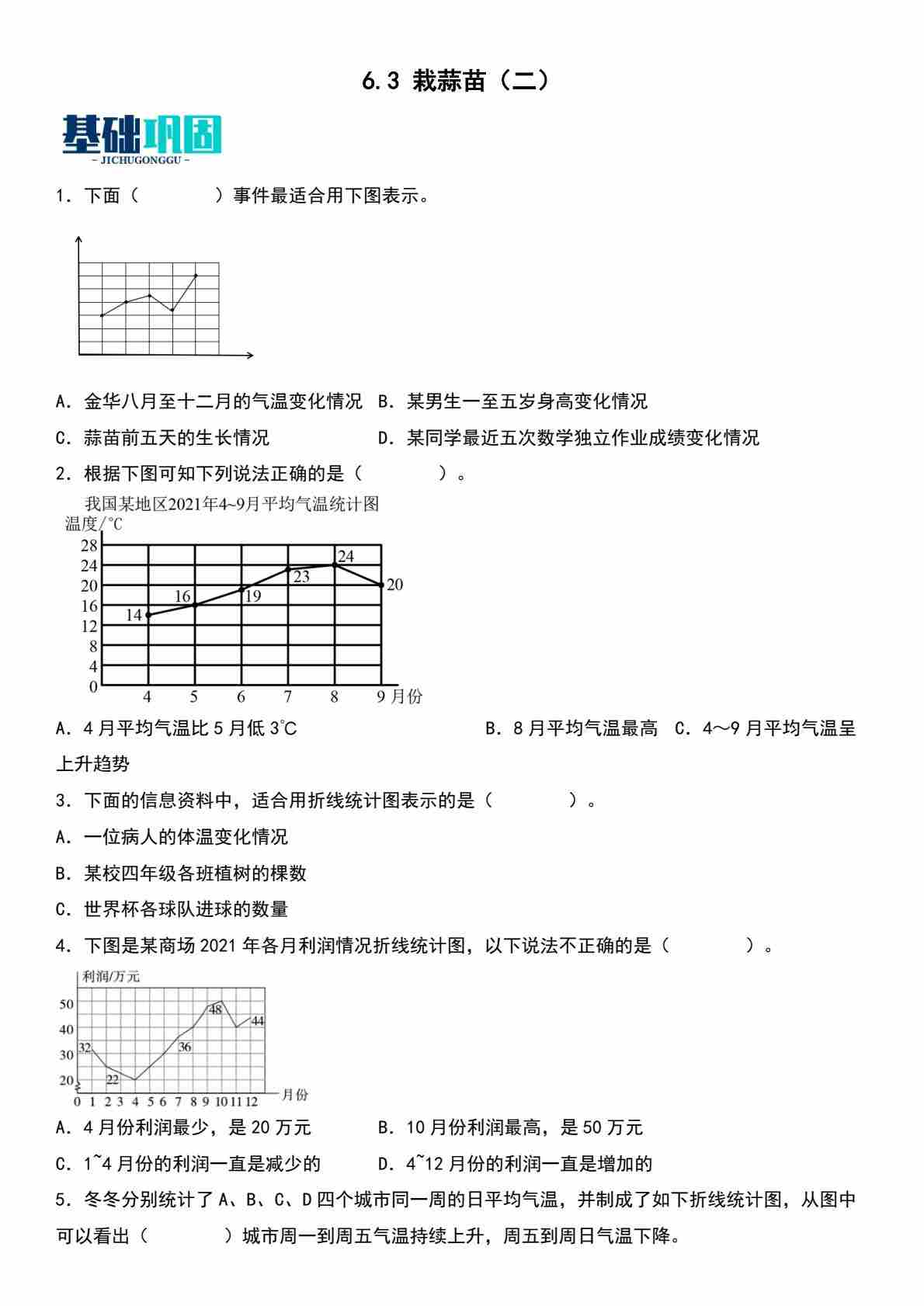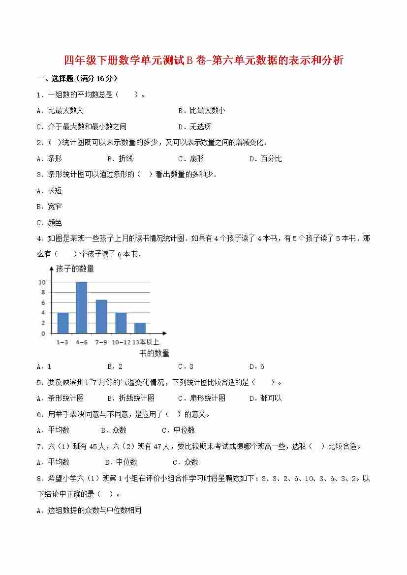 【单元AB卷】四年级下册数学单元测试B卷-第六单元数据的表示和分析 北师大版(含答案)