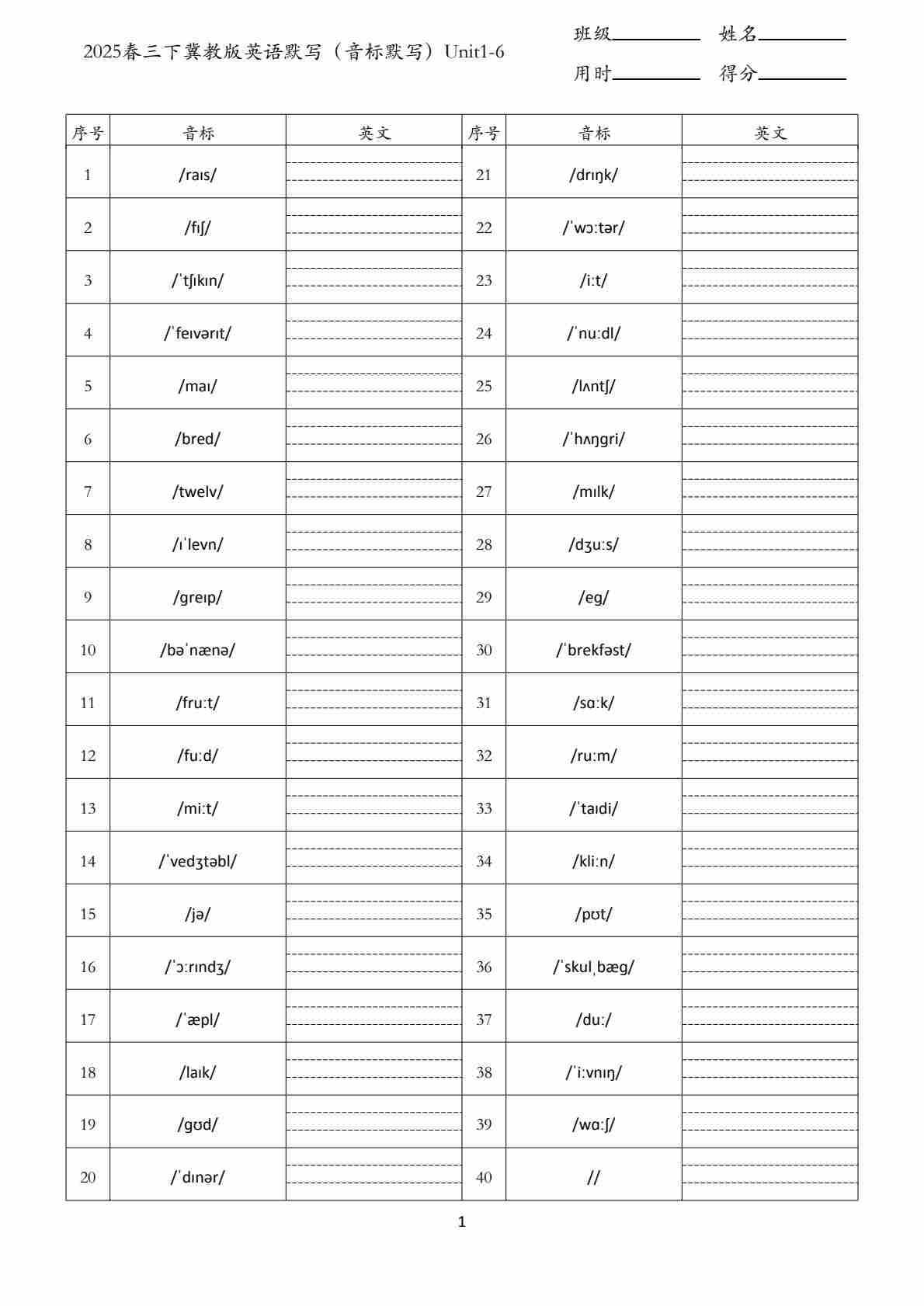 冀教三下英语第一次月考(Unit1-Unit2)(听力音频)