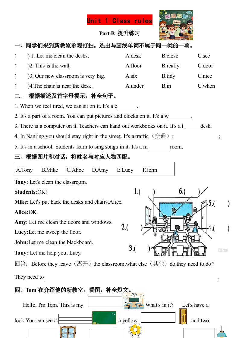 Unit 1 Class rules Part B 提优练习(含参考答案)人教新版(PEP)四年级下册