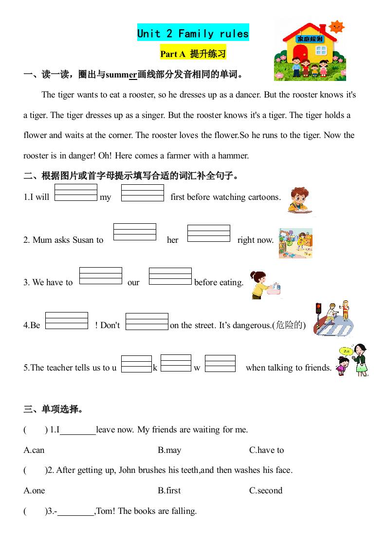 Unit 2 Family rules Part A 提优练习(含参考答案)人教新版(PEP)四年级下册