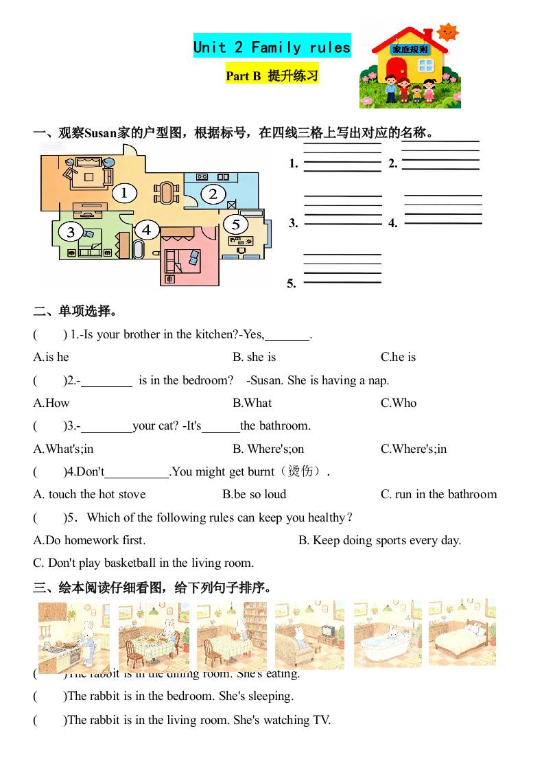 Unit 2 Family rules Part B 提优练习(含参考答案)人教新版(PEP)四年级下册