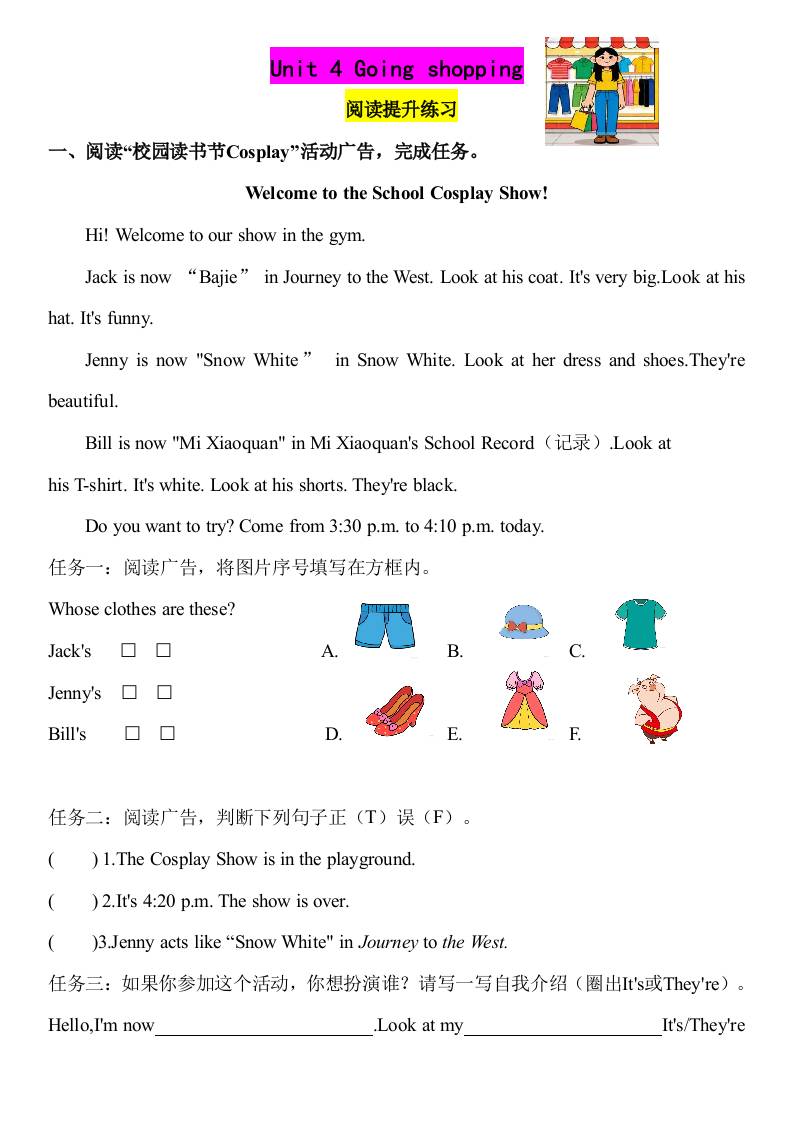 Unit 4 Going shopping 阅读提升练习(含参考答案)人教新版(PEP)四年级下册