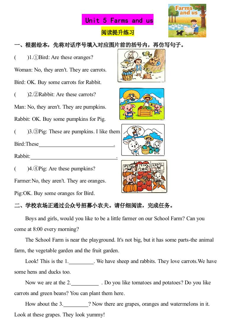Unit 5 Farms and us 阅读提升练习(含参考答案)人教新版(PEP)四年级下册