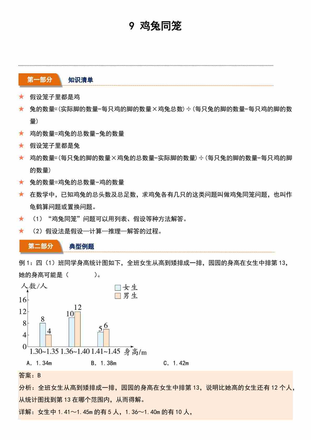 第9讲 鸡兔同笼(学生版)(知识梳理+典例分析+举一反三+阶梯训练)人教新课标版