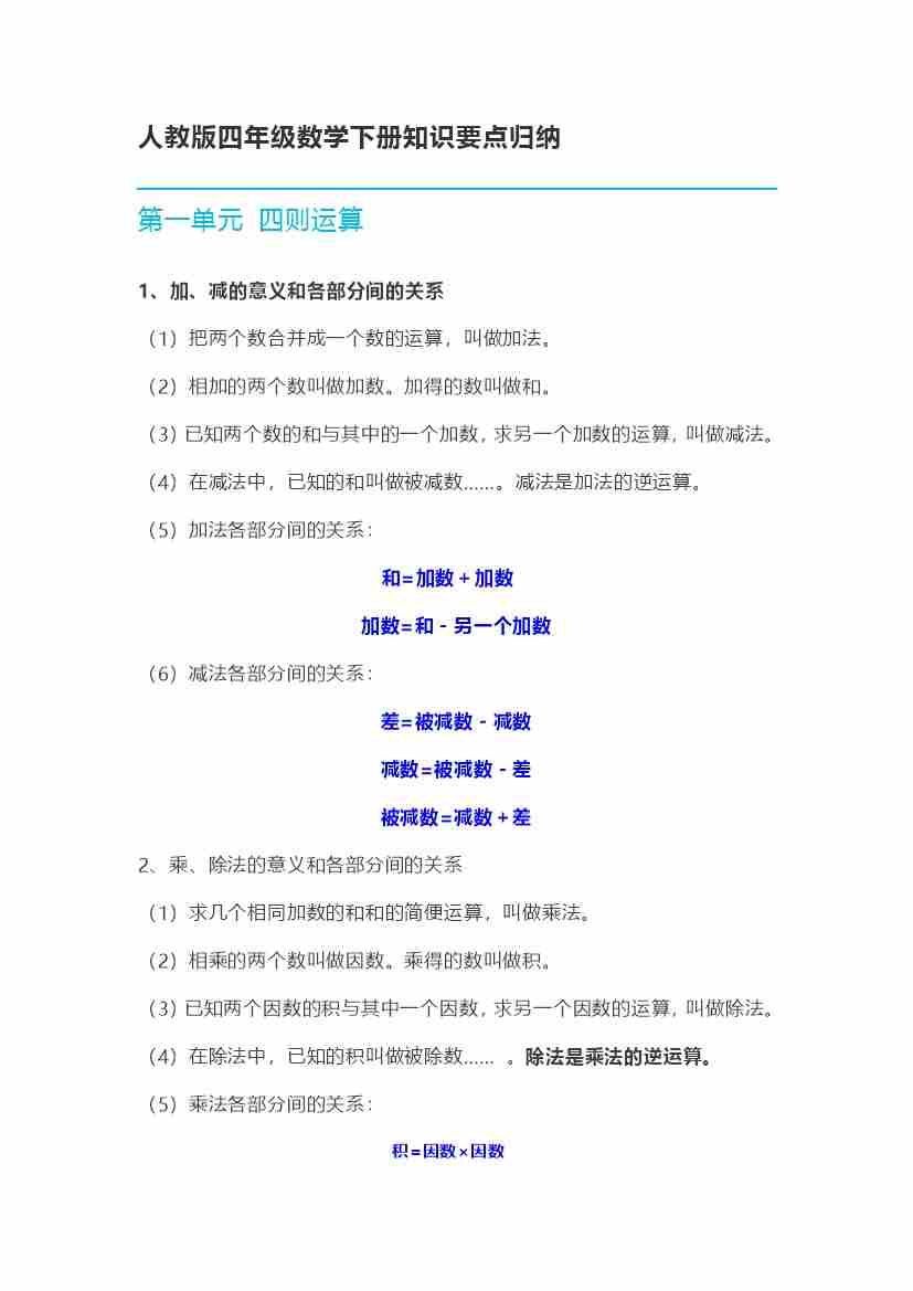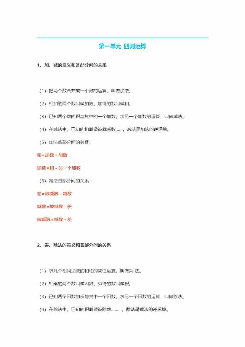 第1讲 四则运算(学生版)(知识梳理+典例分析+举一反三+阶梯训练)人教新课标版