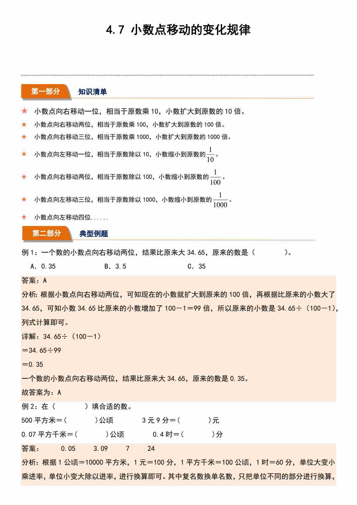 4.7 小数点移动的变化规律(分层作业)