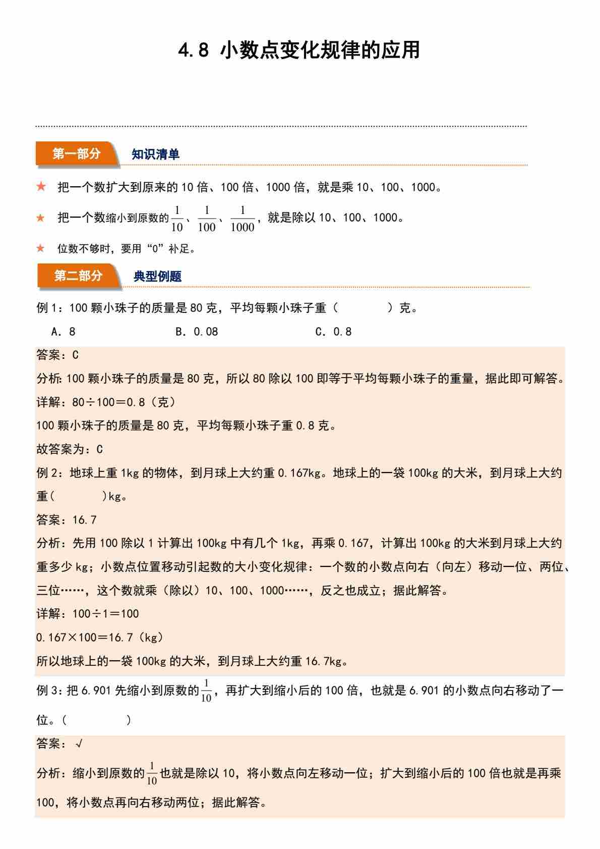 4.8 小数点变化规律的应用(分层作业)