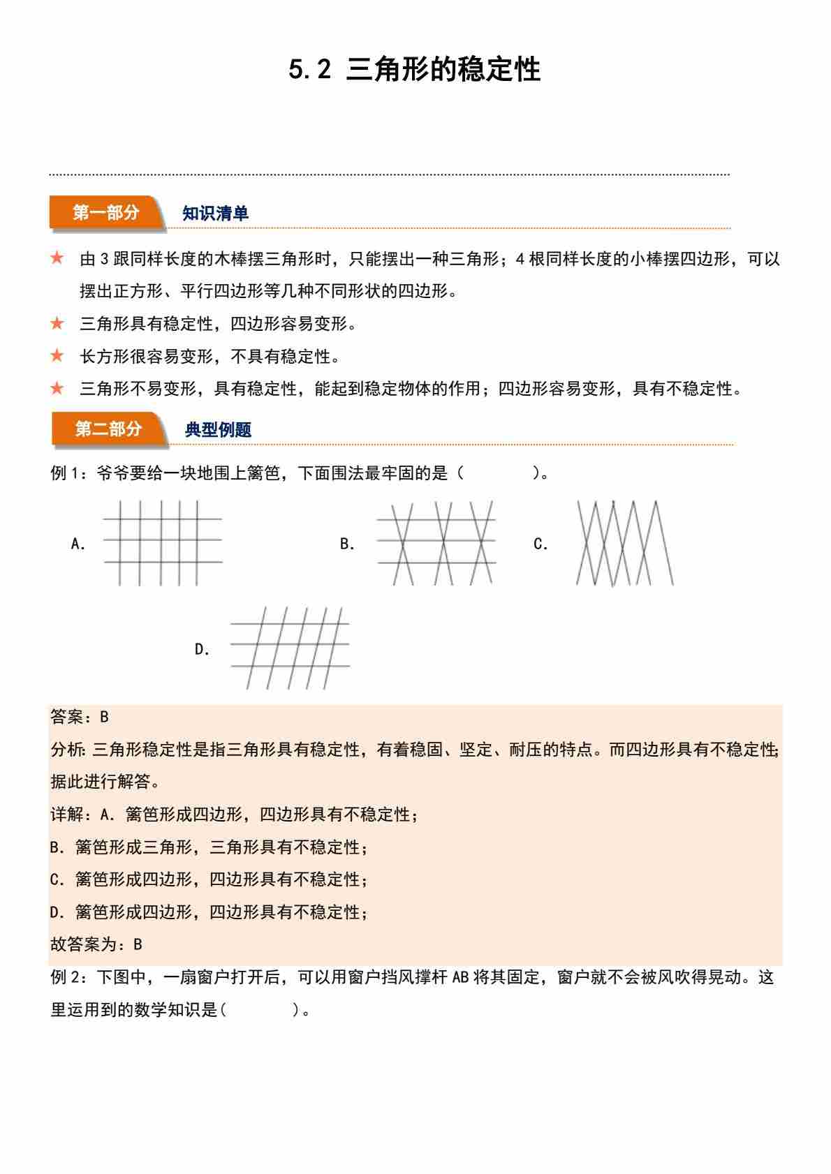5.2 三角形的稳定性(分层作业)