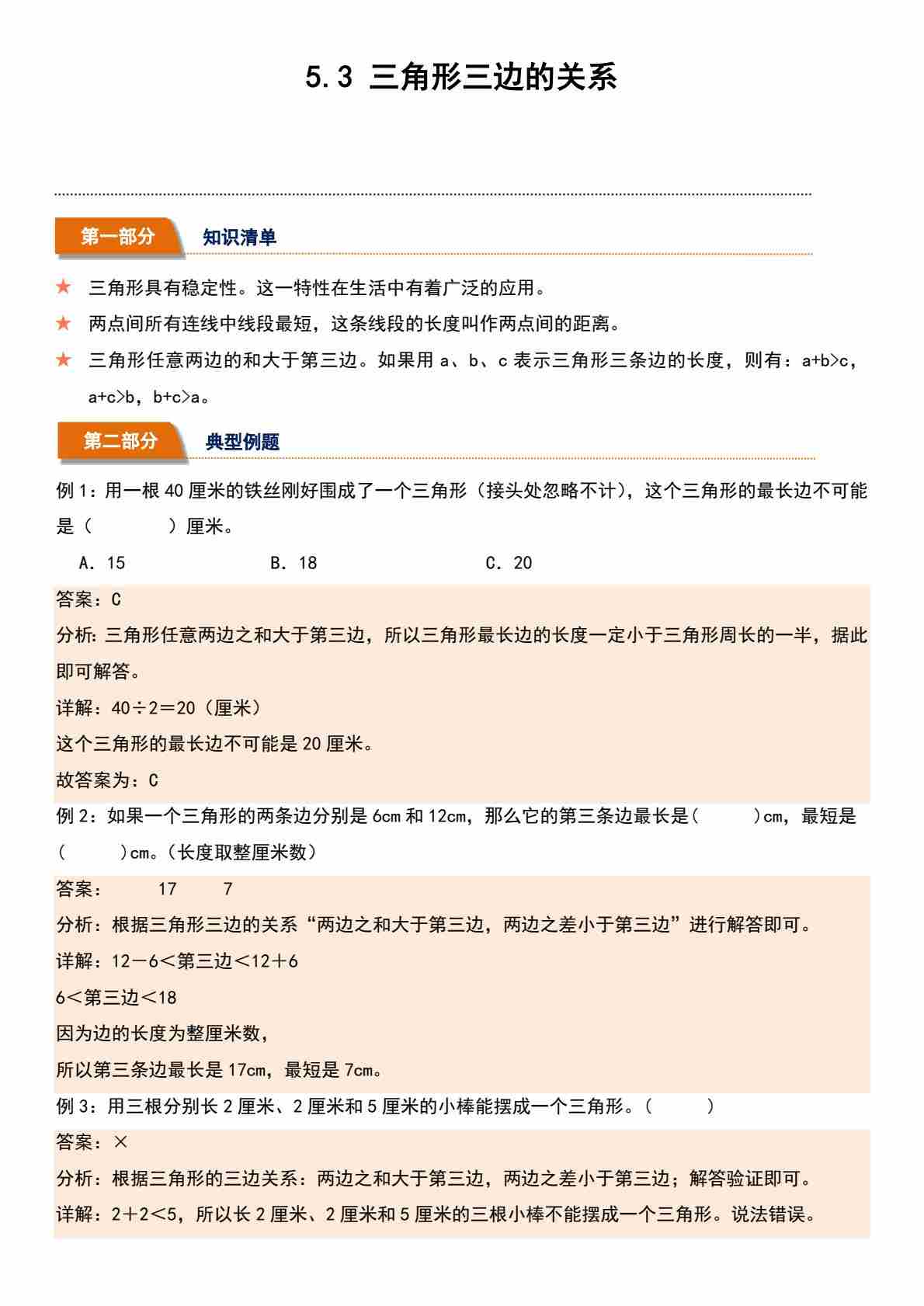 5.3 三角形三边的关系(分层作业)