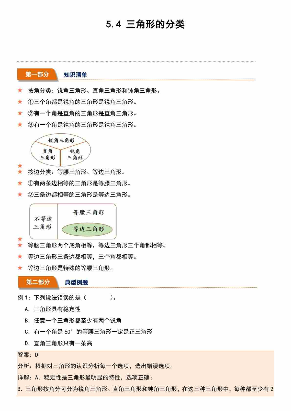 5.4 三角形的分类(分层作业)