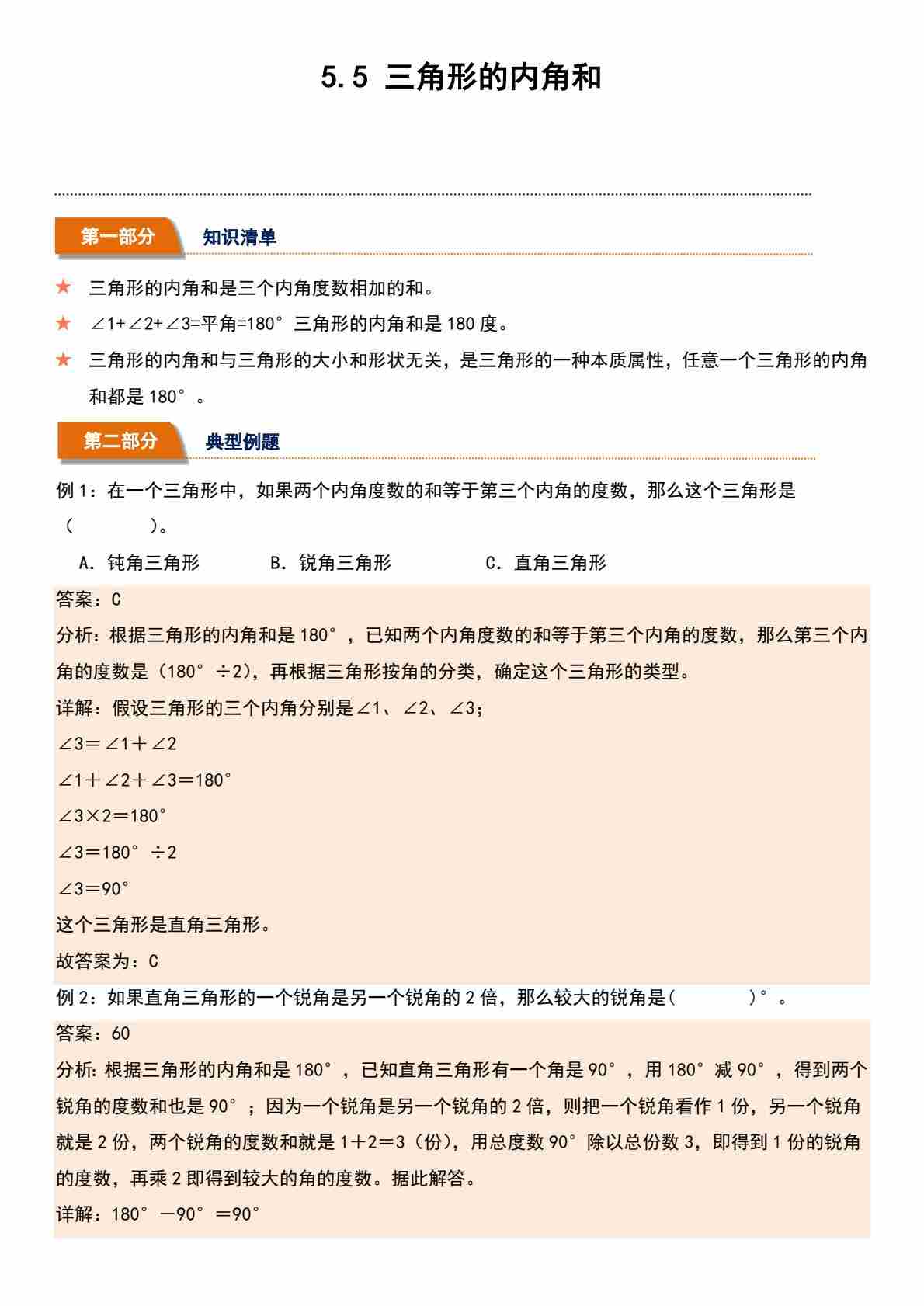 5.5 三角形的内角和(分层作业)