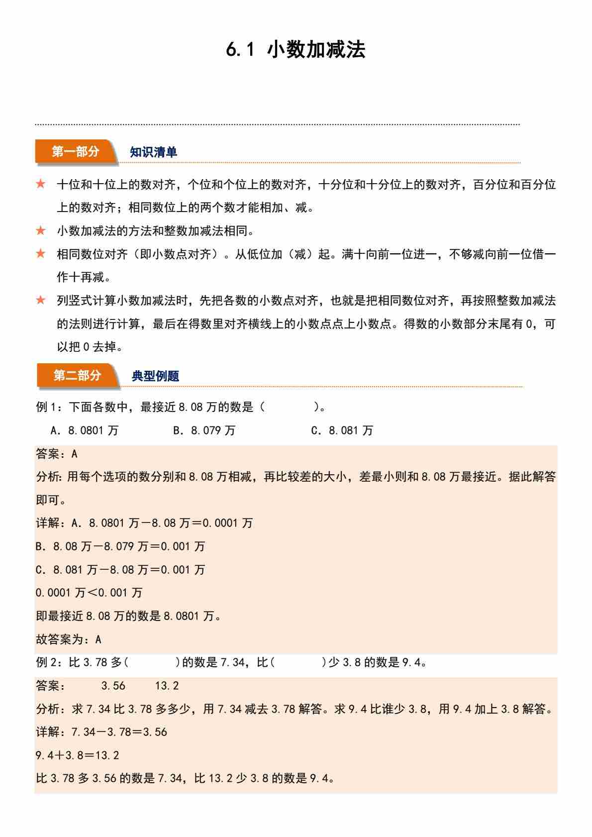 6.1 小数加减法(分层作业)