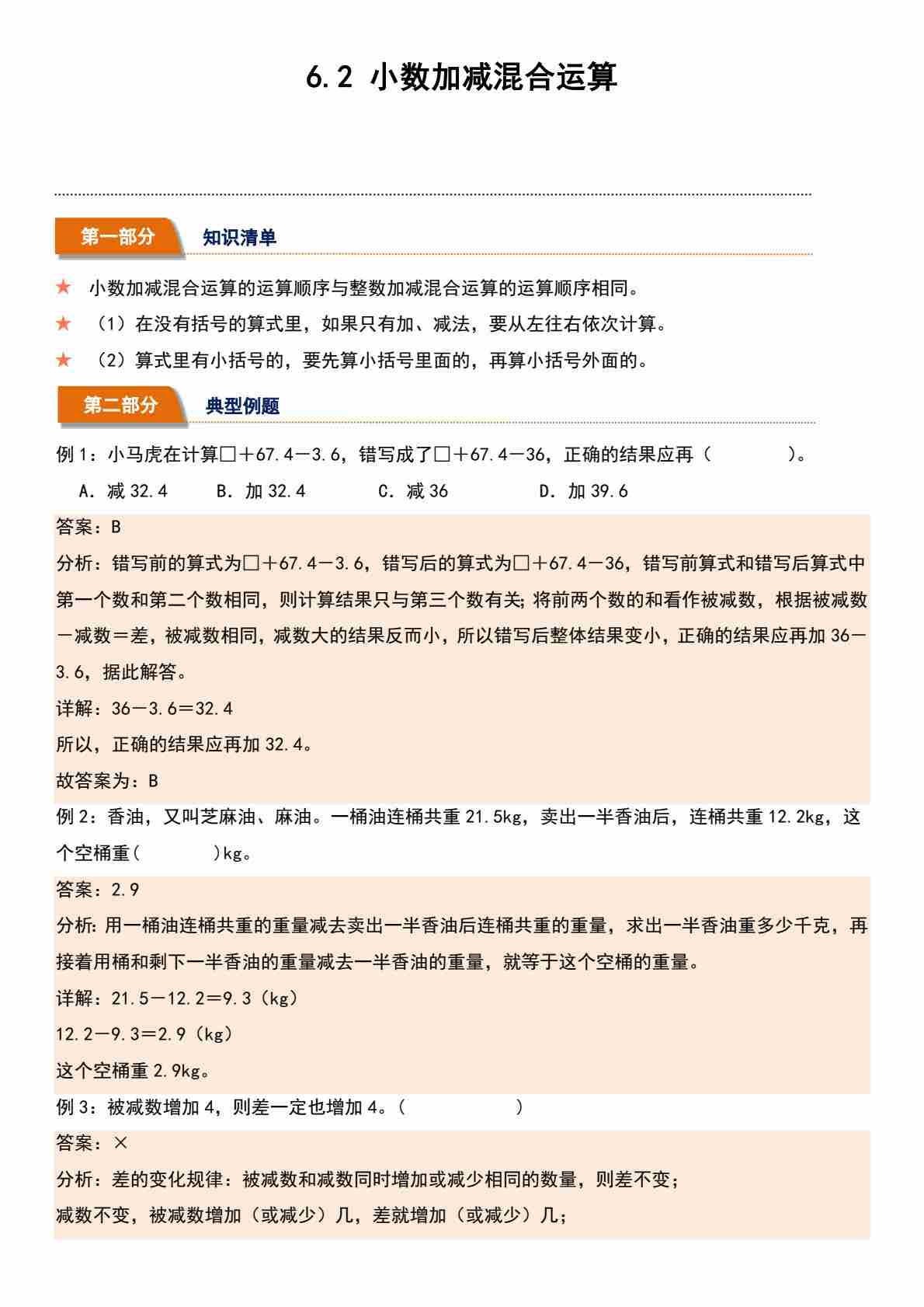 6.2 小数加减混合运算(分层作业)