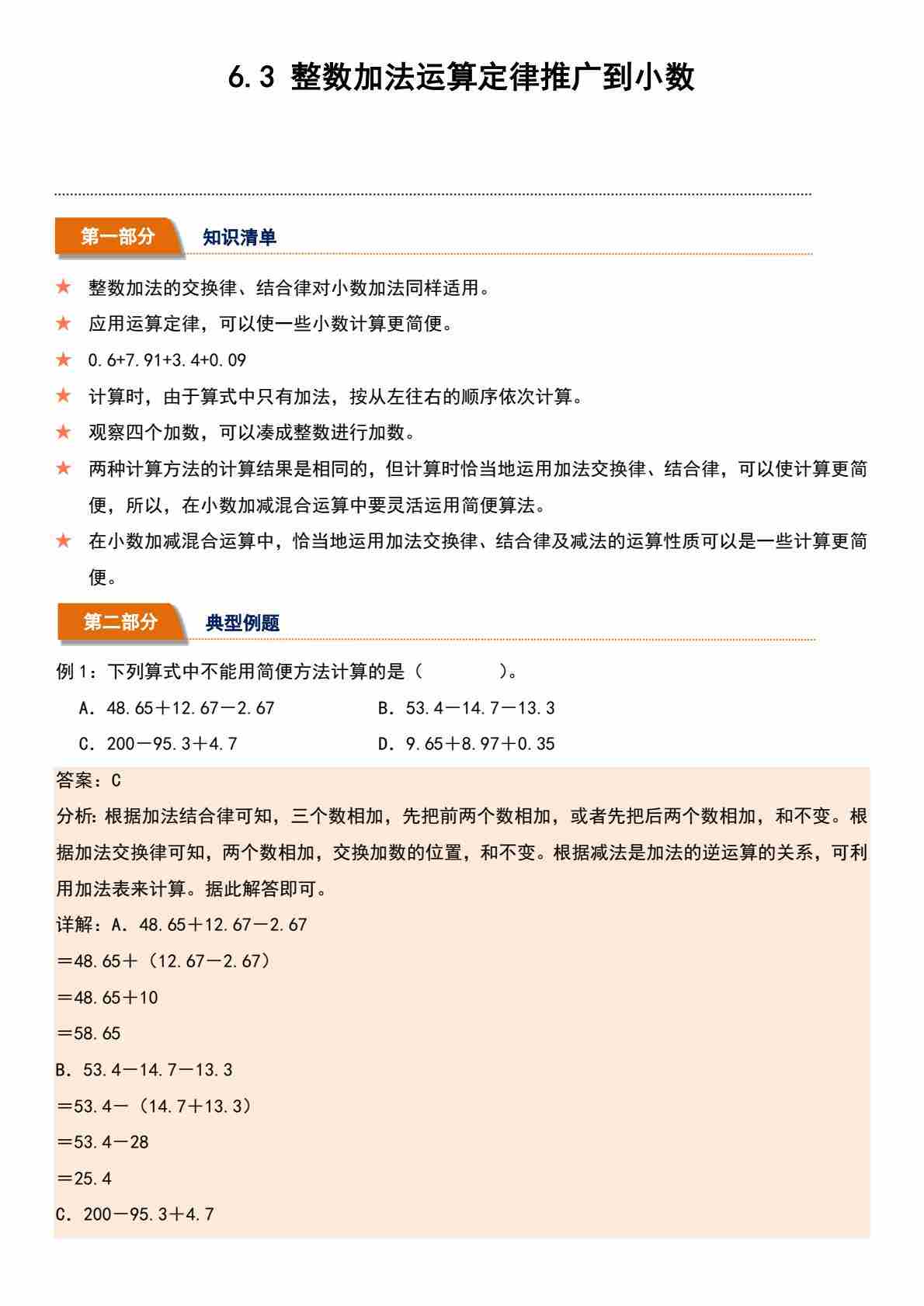 6.3 整数加法运算定律推广到小数(分层作业)