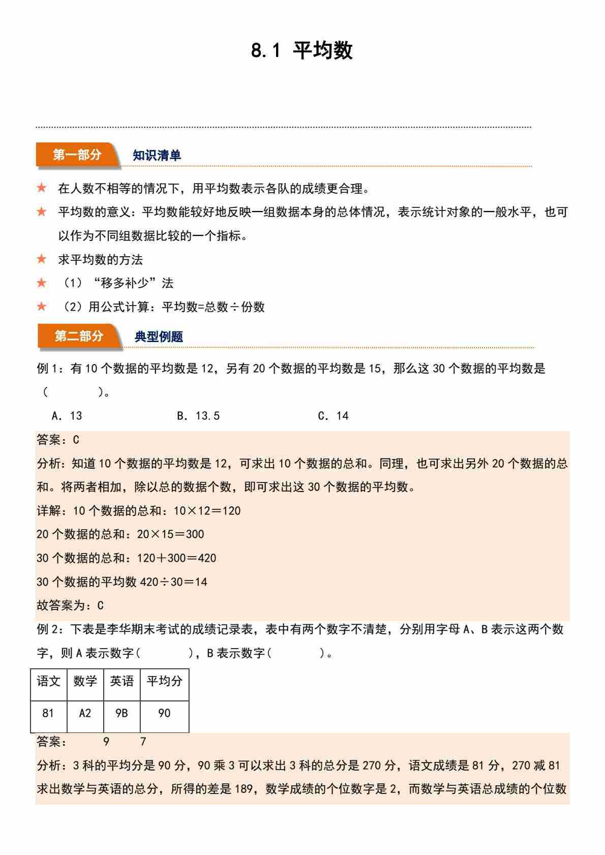 8.1 平均数(分层作业)