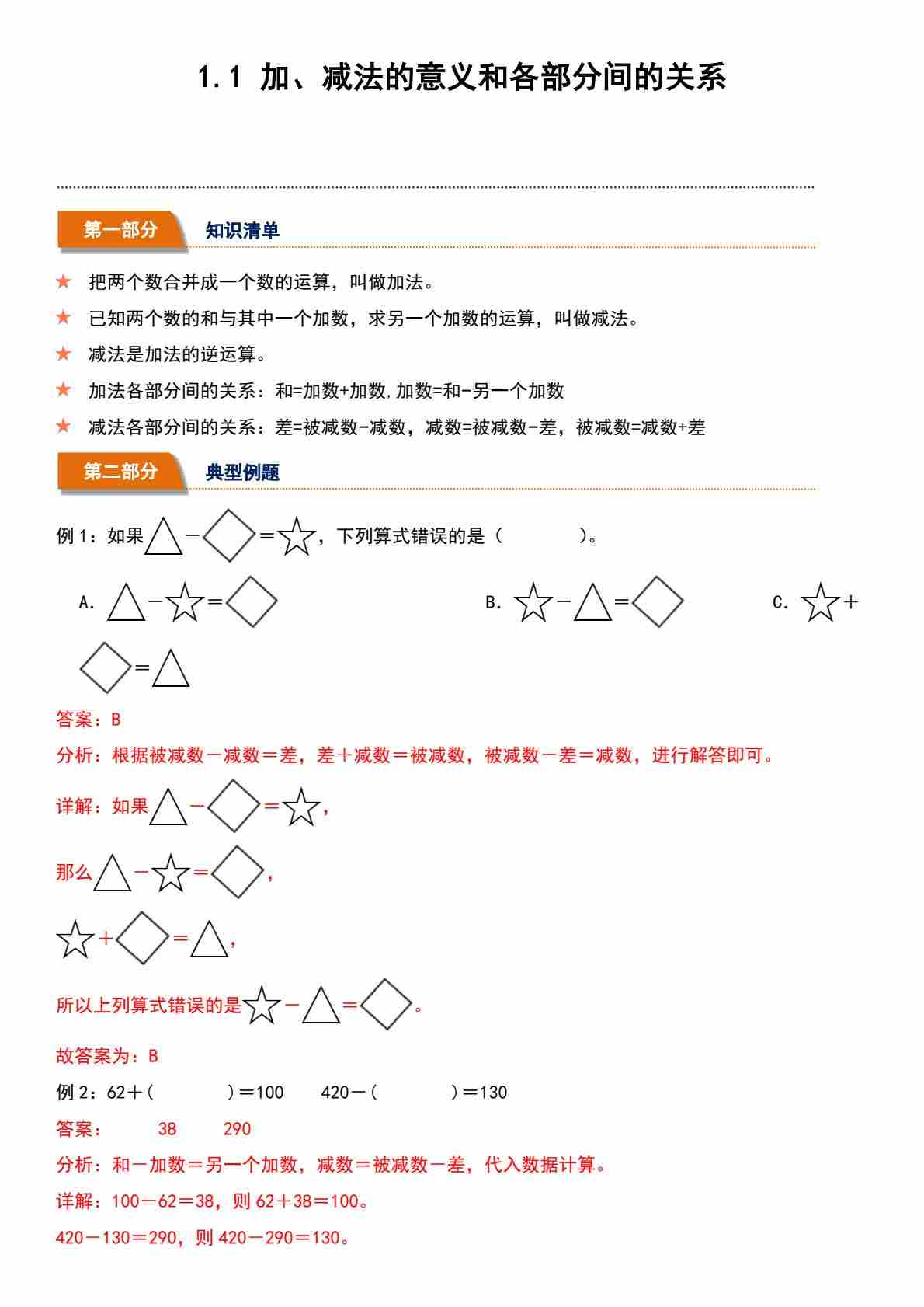 1.1 加、减法的意义和各部分间的关系(分层作业)