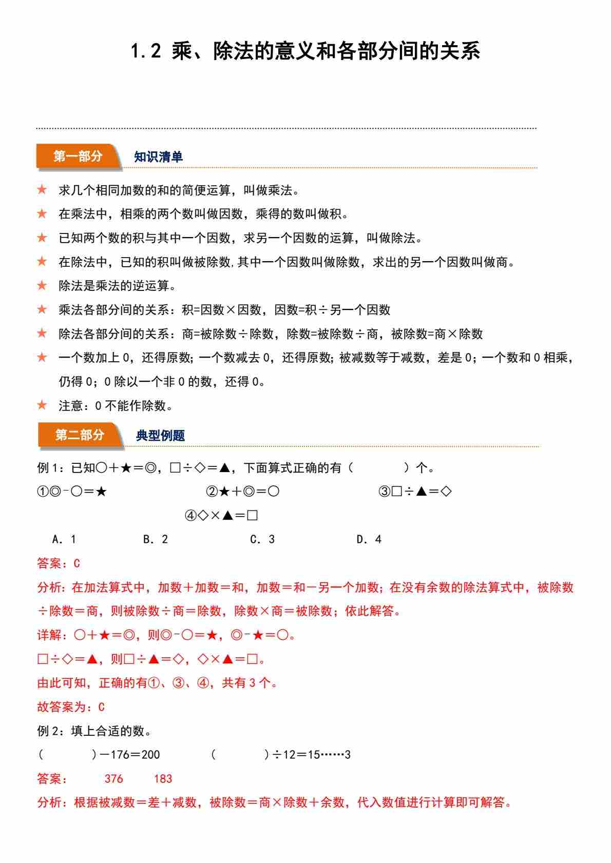 1.2 乘、除法的意义和各部分间的关系(分层作业)