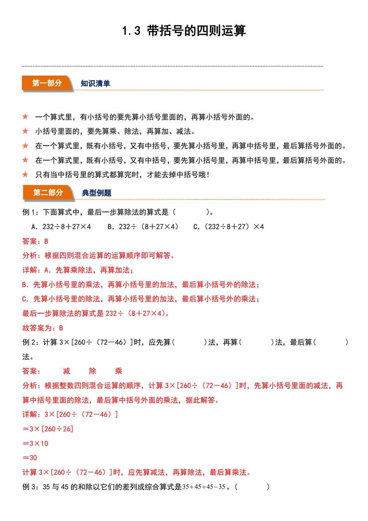 1.3 带括号的四则运算(分层作业)