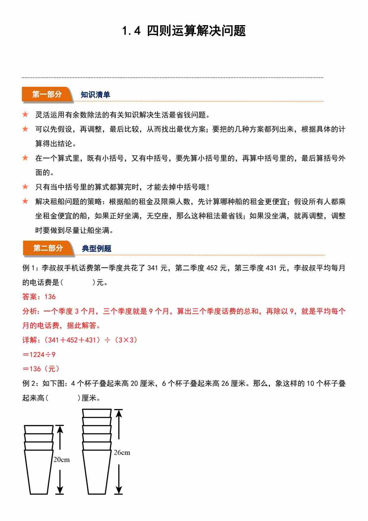 1.4 四则运算解决问题(分层作业)