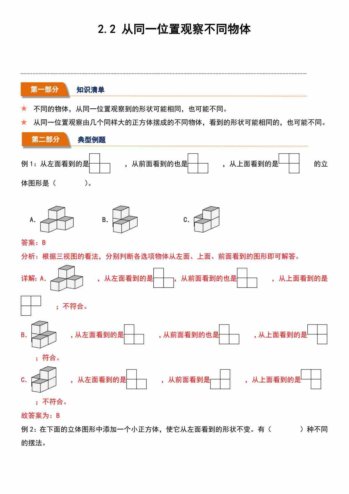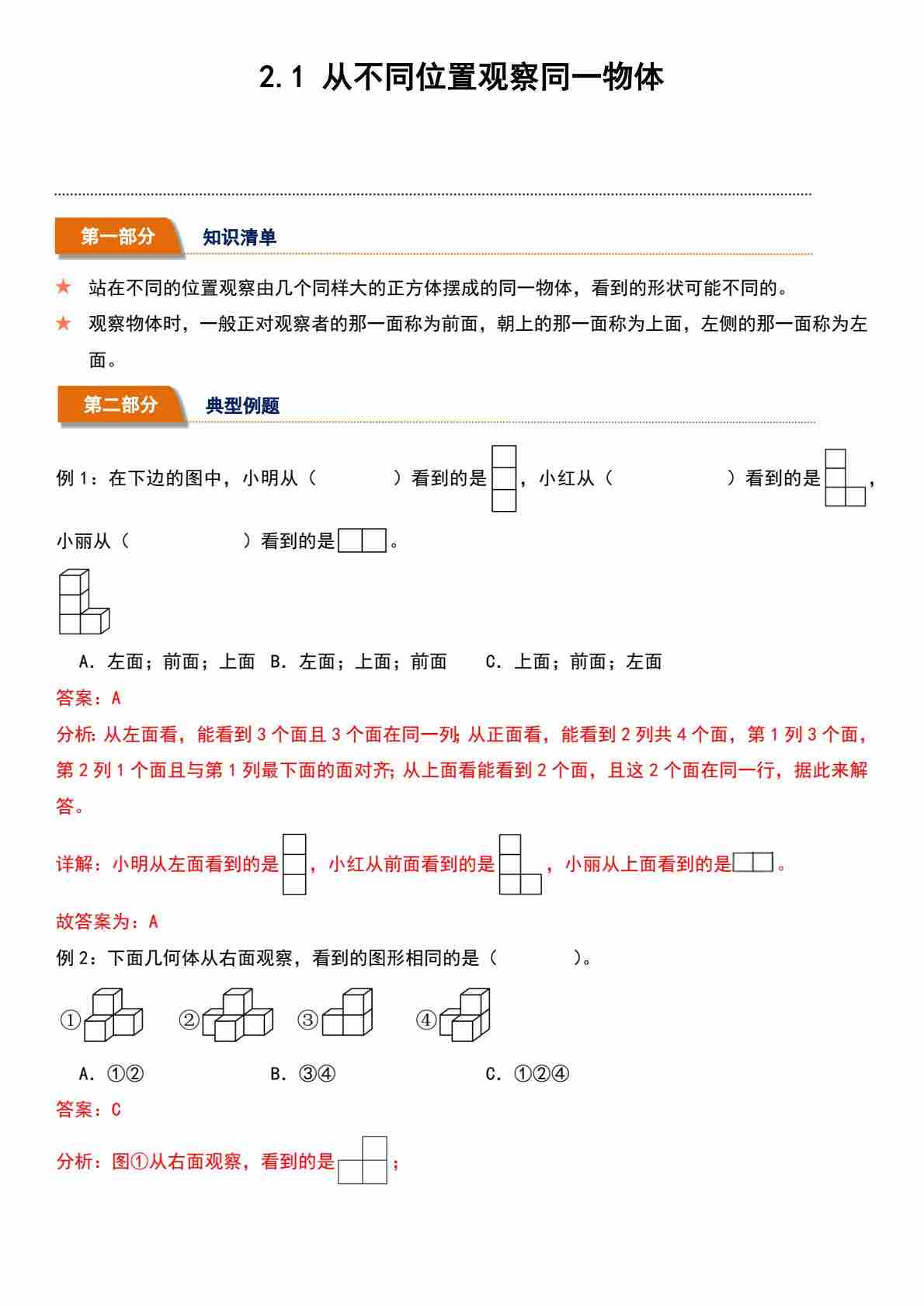 2.1 从不同位置观察同一物体(分层作业)