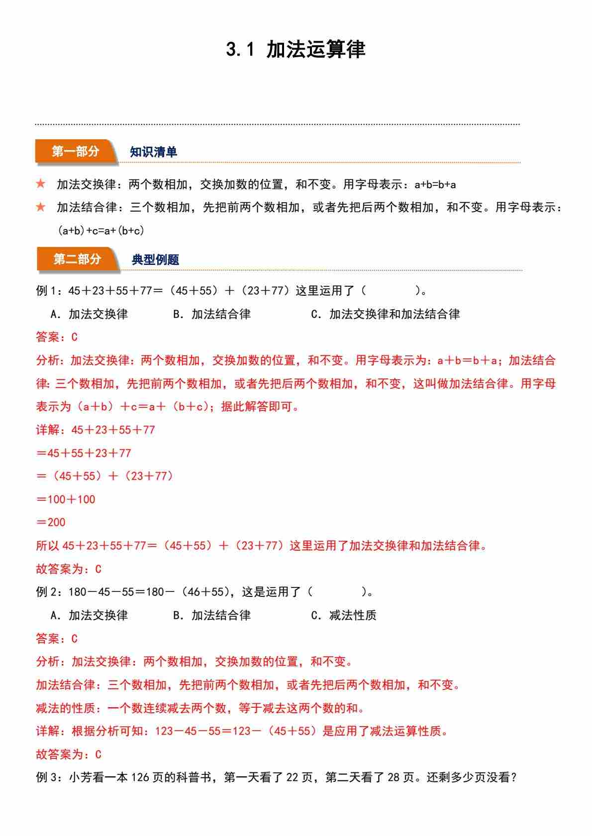 3.1 加法运算律(分层作业)