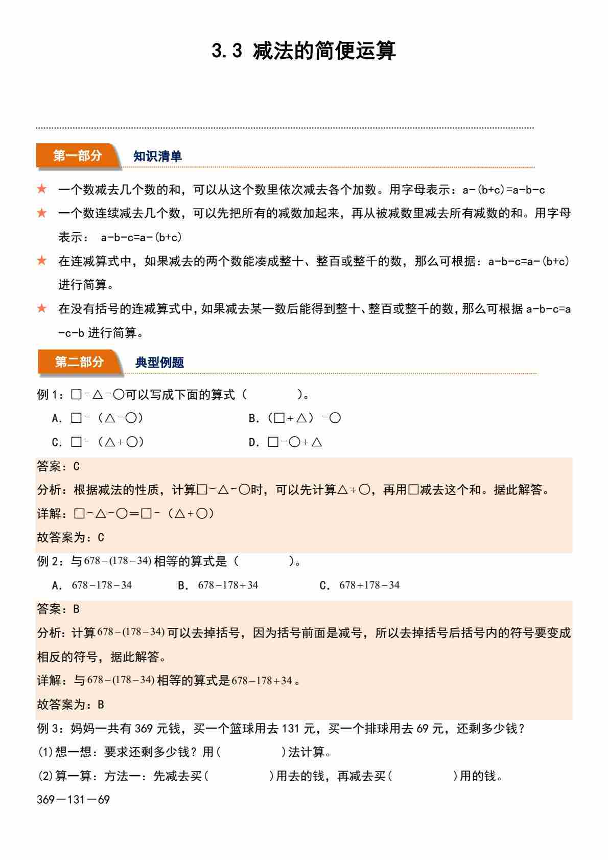 3.3 减法的简便运算(分层作业)