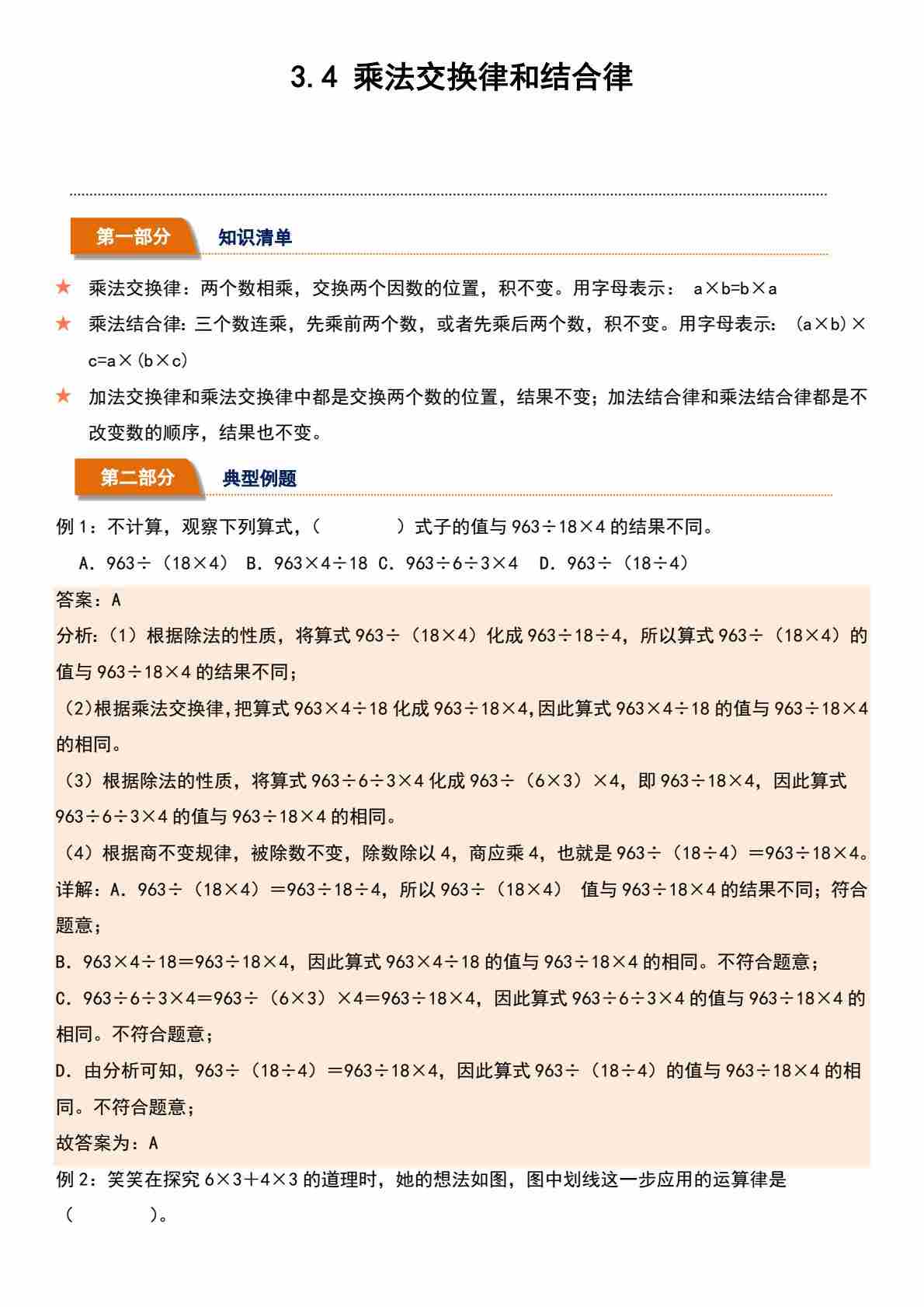 3.4 乘法交换律和结合律(分层作业)