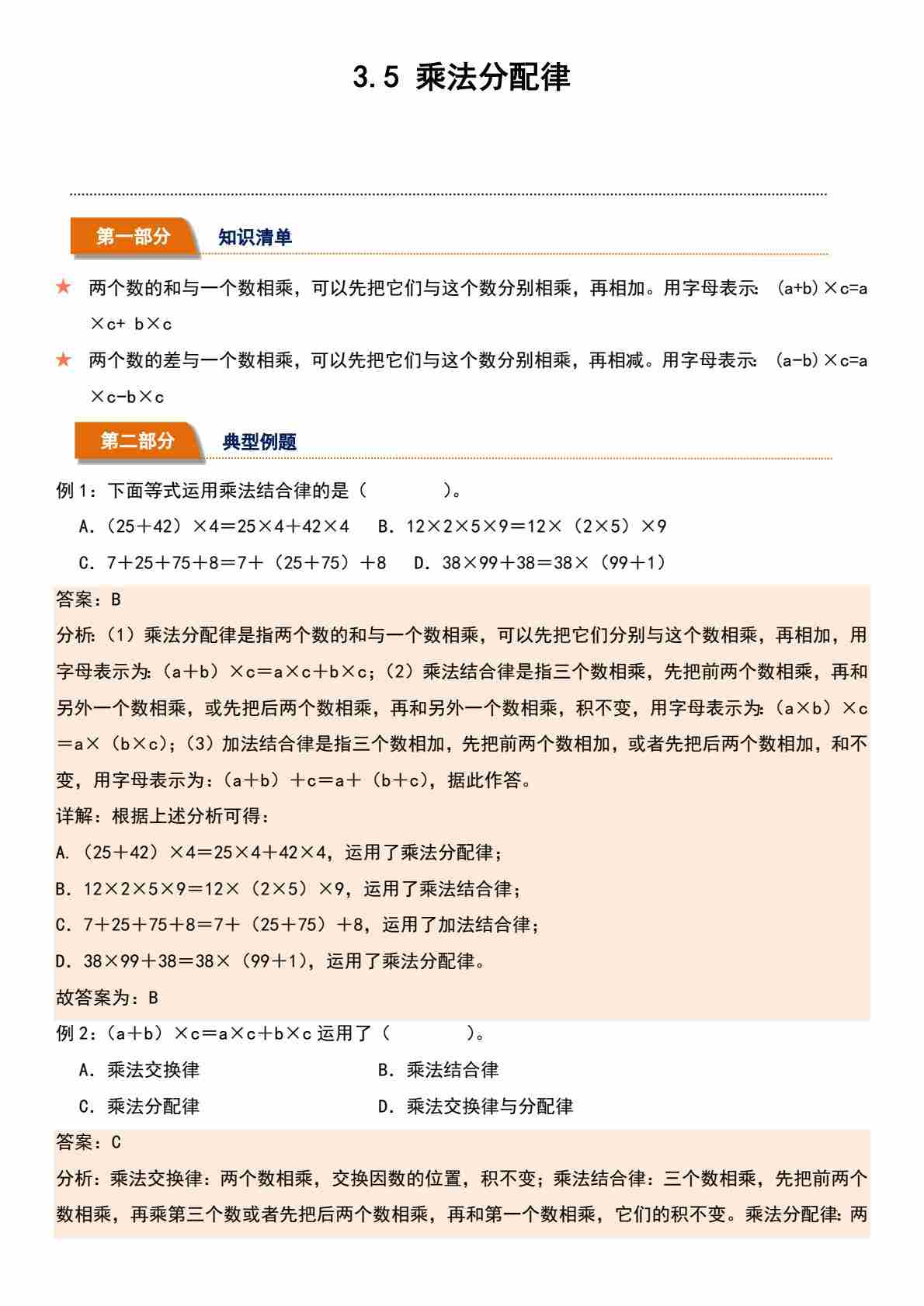 3.5 乘法分配律(分层作业)