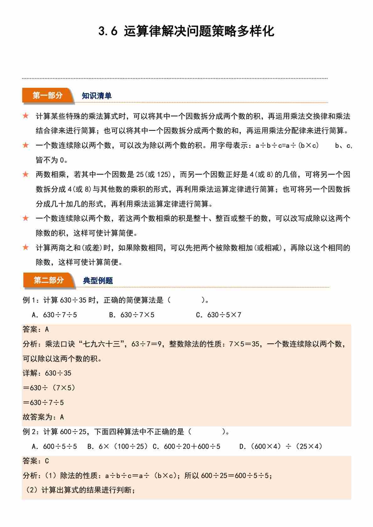 3.6 运算律解决问题策略多样化(分层作业)