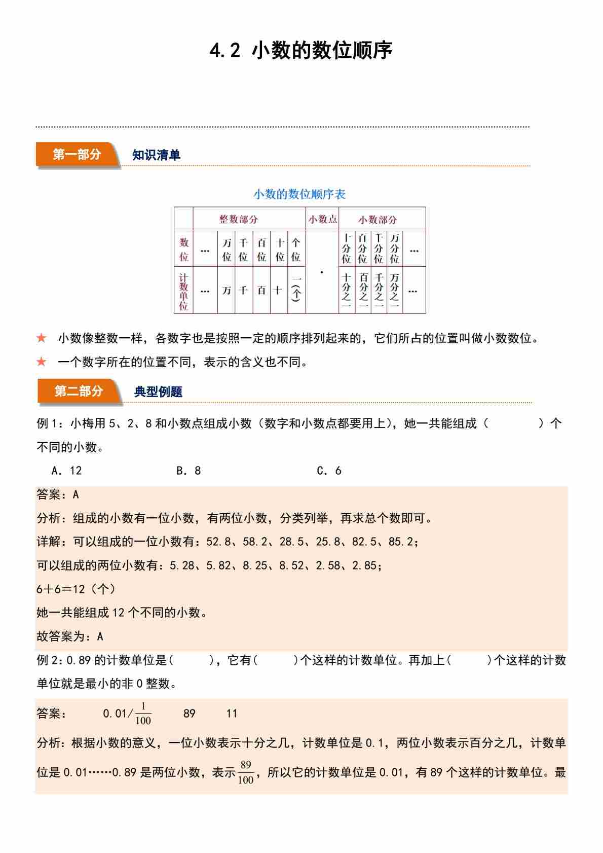 4.2 小数的数位顺序(分层作业)